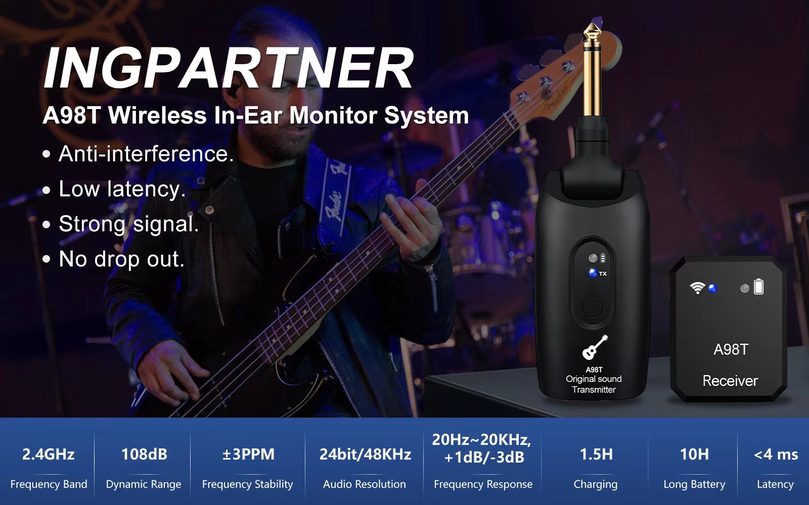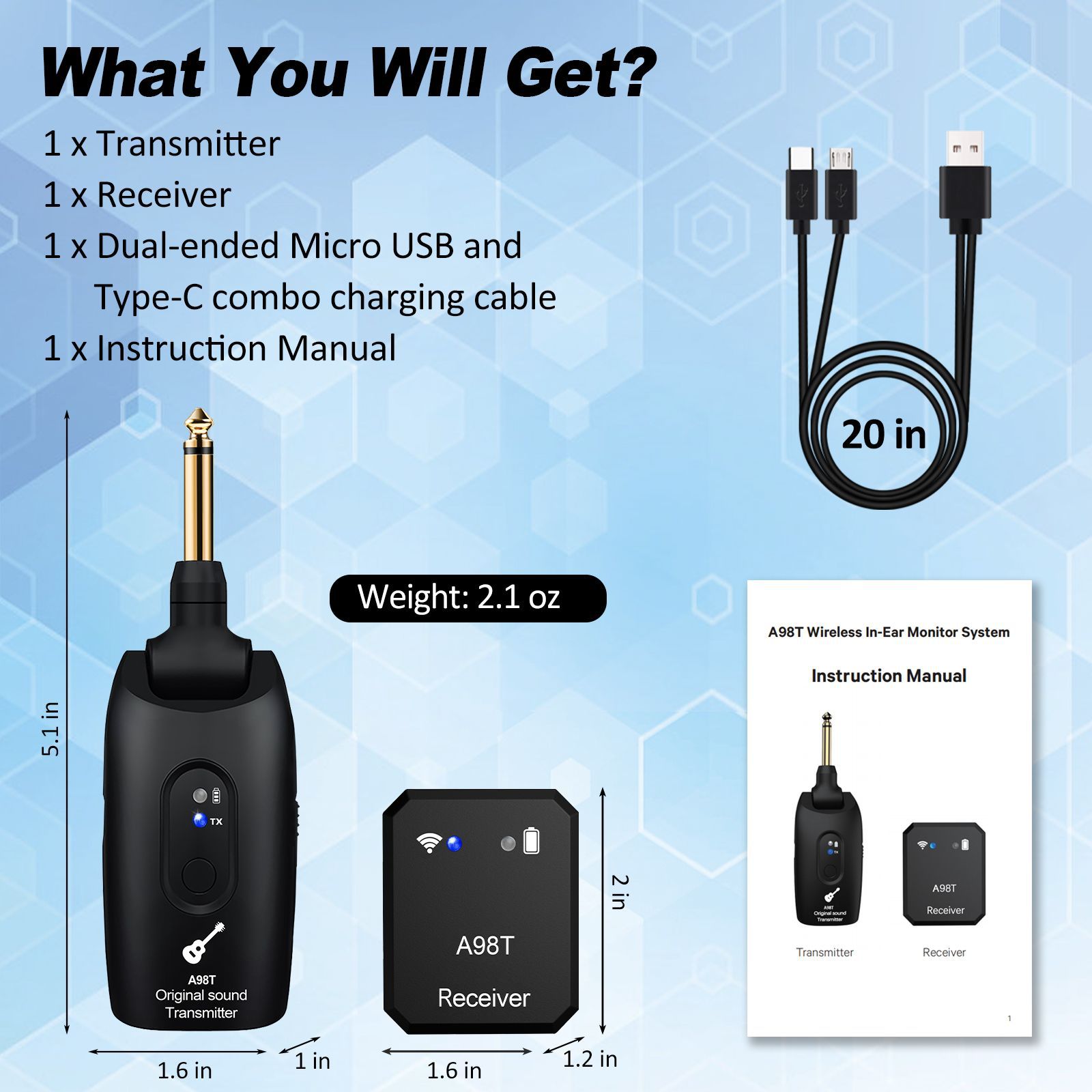 국경 간 새로운 A98T 무선 모니터 귀 반환 수신기 기타 무선 오디오 전기 음향 기기 전송 픽업스토어 가기
