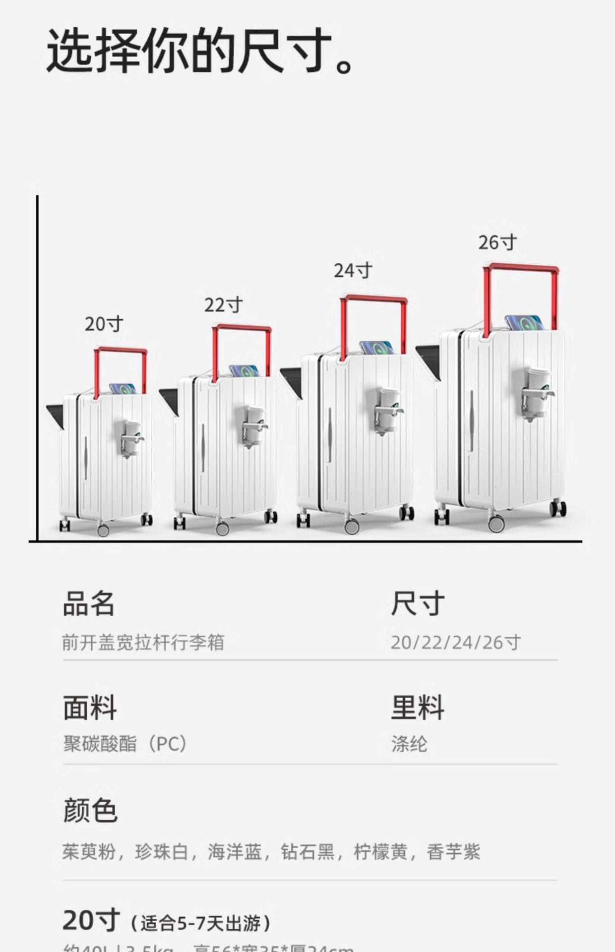 새로운 PC 와이드 롤러 26인치 대용량 지퍼 여행가방 20inch 여성용 기내용 캐리어 남성용 24inch 여행가방