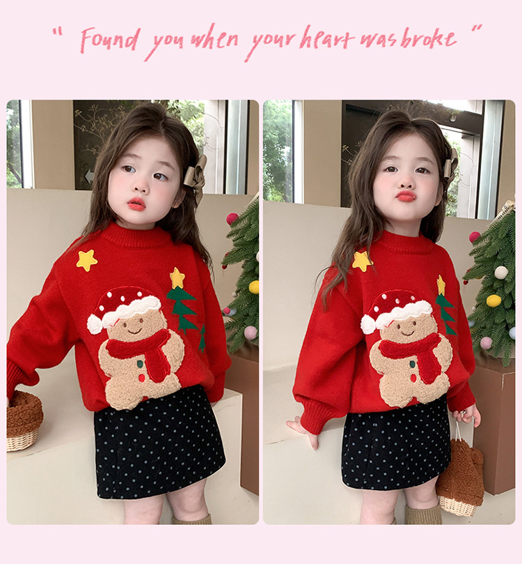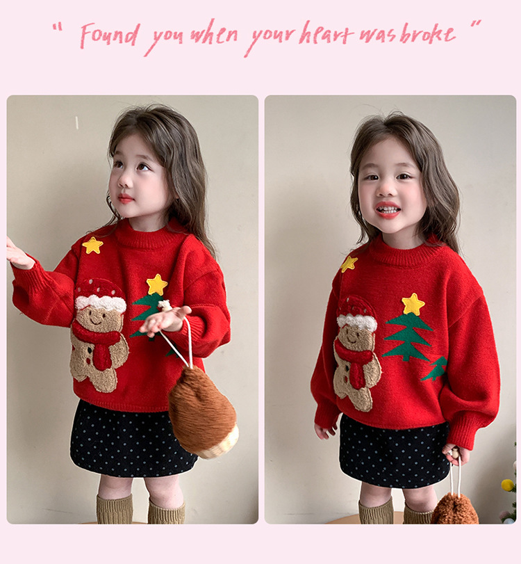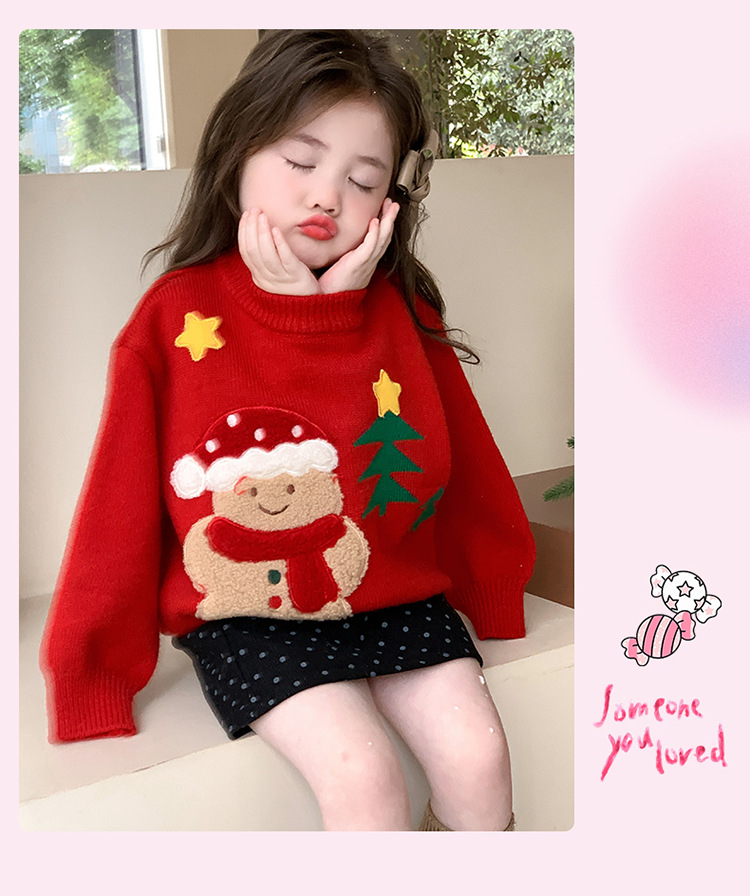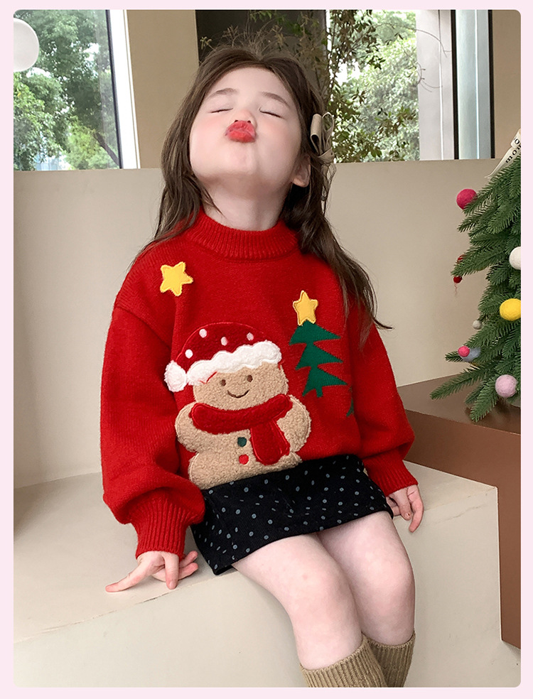 여아용 두꺼운 크리스마스 스웨터 2025 겨울 신상 아동용 세련된 남아용 빨간색 새해 니트 상의스토어 가기