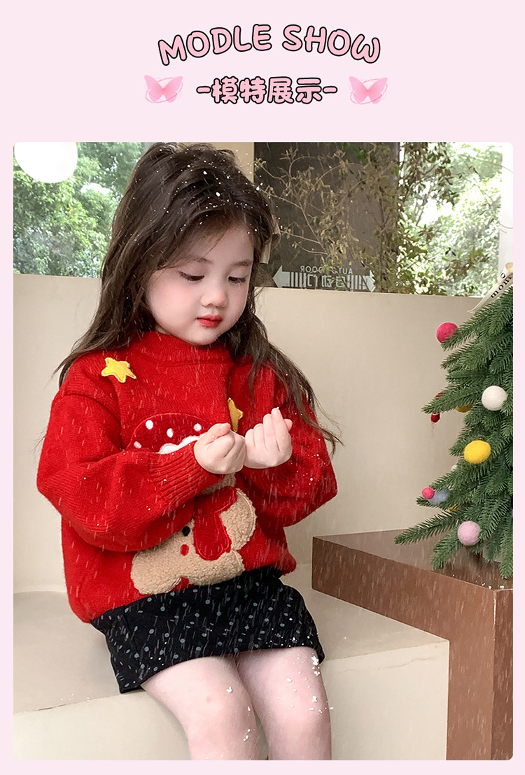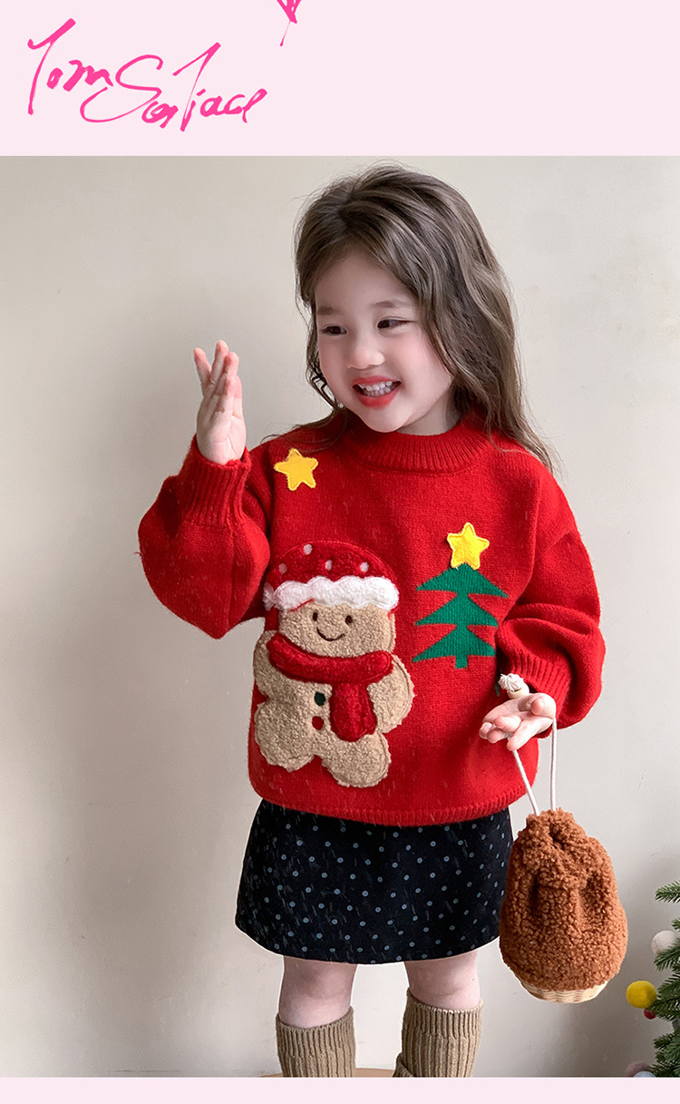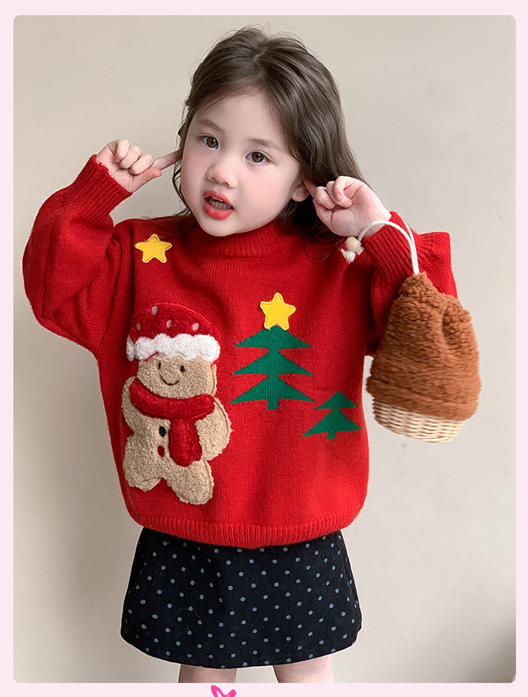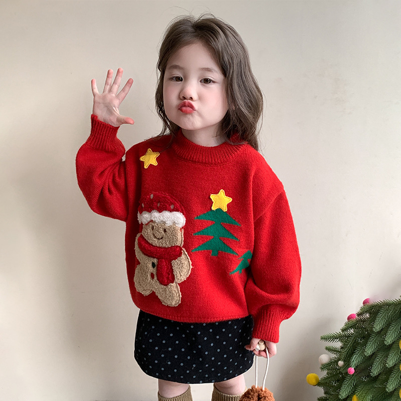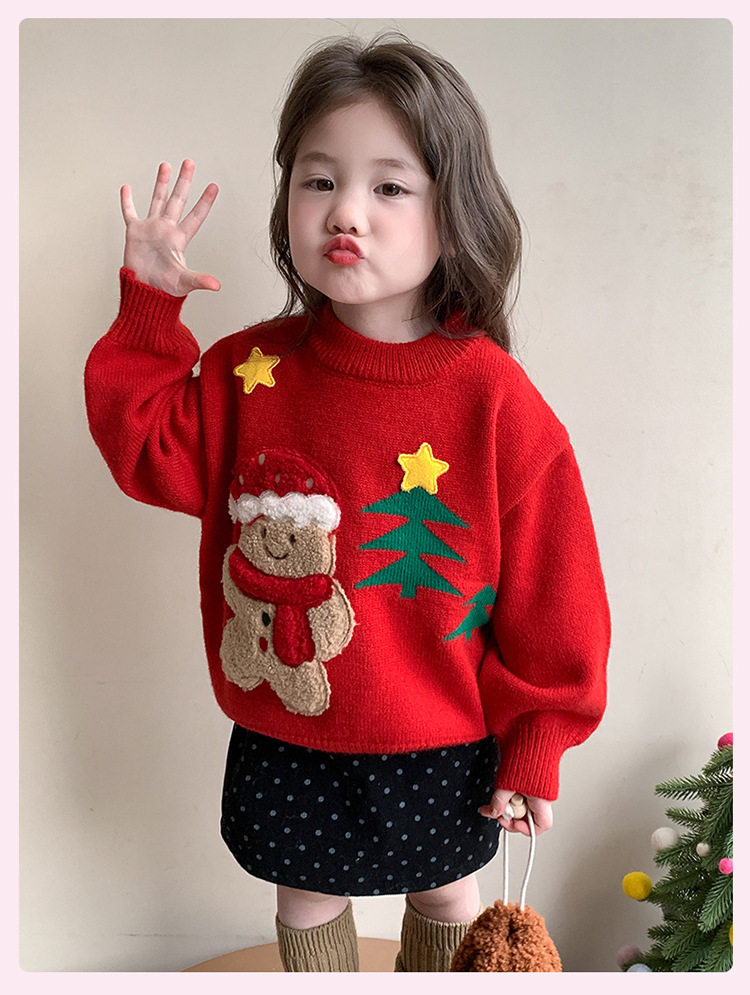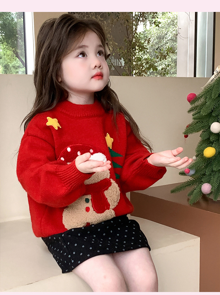여아용 두꺼운 크리스마스 스웨터 2025 겨울 신상 아동용 세련된 남아용 빨간색 새해 니트 상의