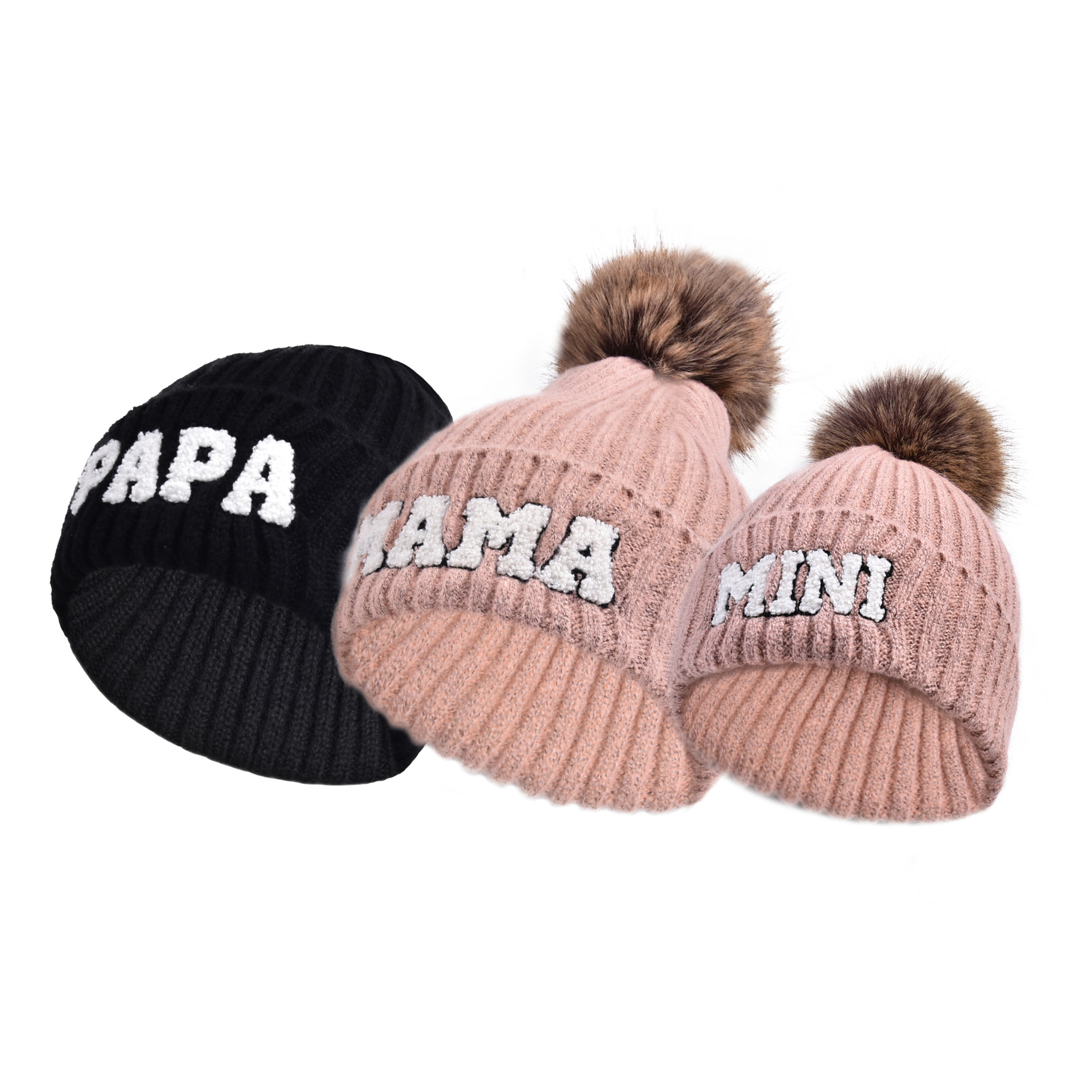 국경 간 대외 무역 새로운 자수 편지 PAPA MAMA 미니 수건 자수 울 모자 가을과 겨울 야외 따뜻한