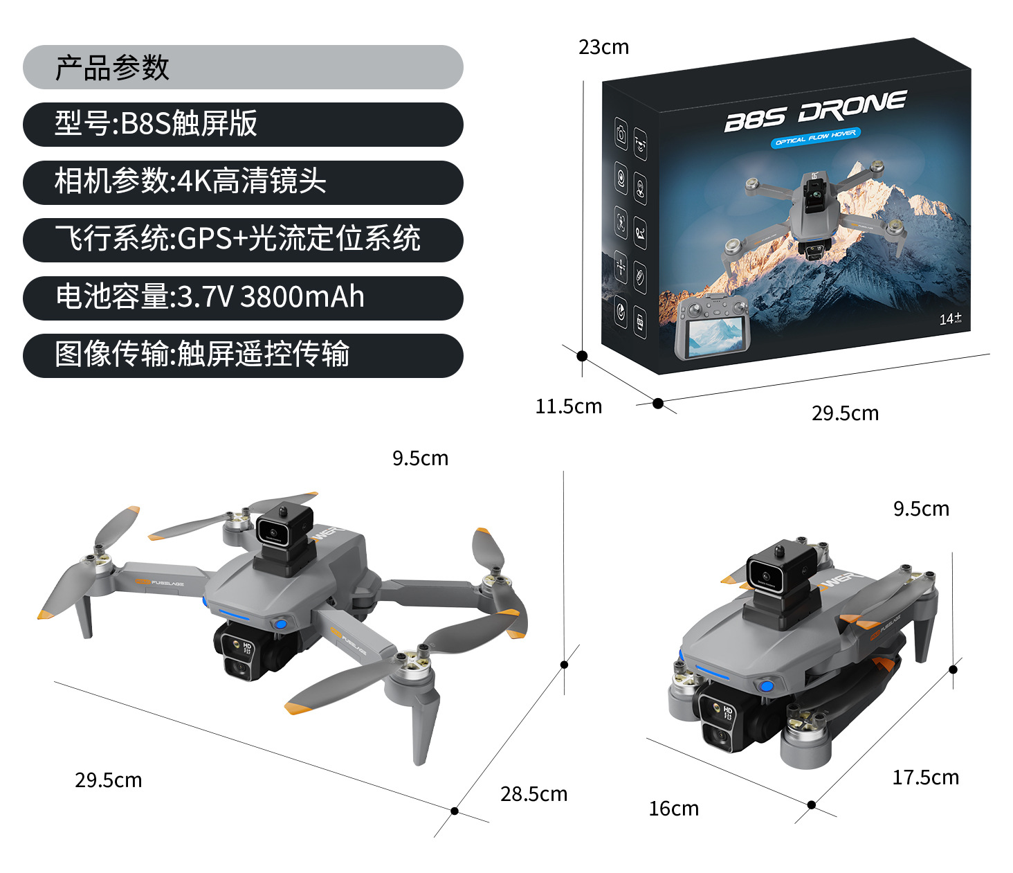 B8S 업그레이드된 스마트 터치 스크린 원격 제어 항공기 GPS 포지셔닝 반환 전문 항공 사진 드론 쿼드콥터