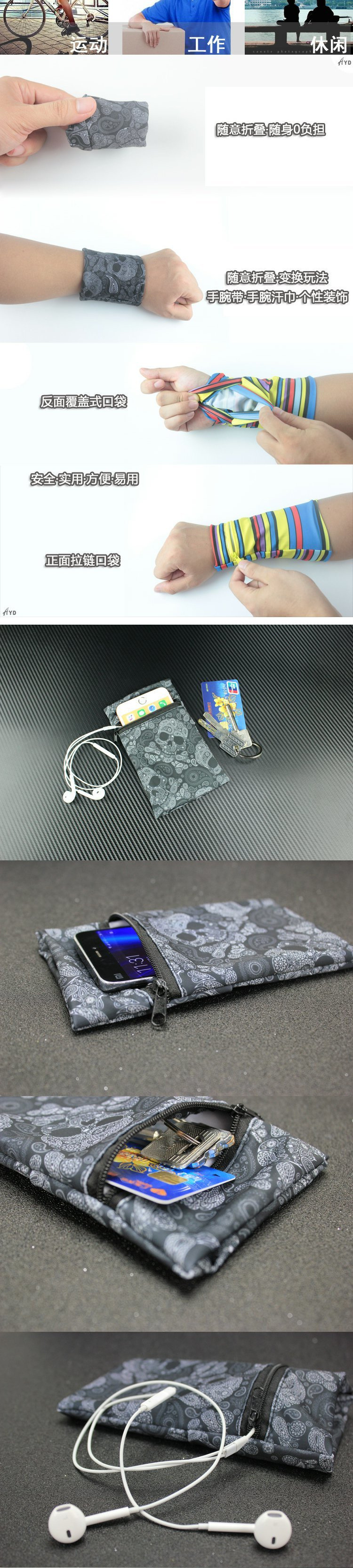 실행 휴대 전화 팔 가방 손목 가방 미니 스포츠 피트니스 휴대 전화 케이스 범용 통기성 손 소매 팔 커버 손목 가방 남성과 여성스토어 가기