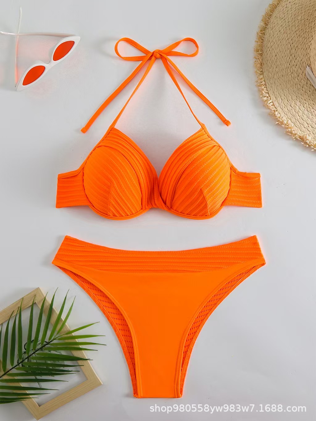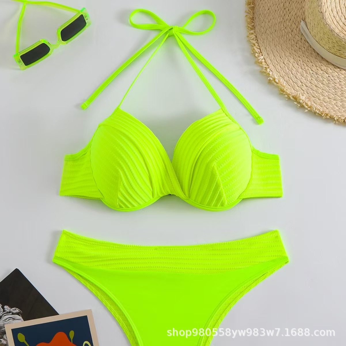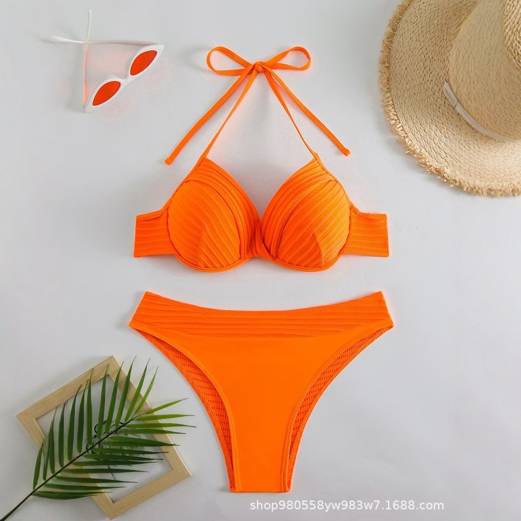 외부 싱글 수영복 2024 솔리드 컬러 섹시 비키니 여성용 스플릿 수영복 스틸 쌍 조립 비치 비키니