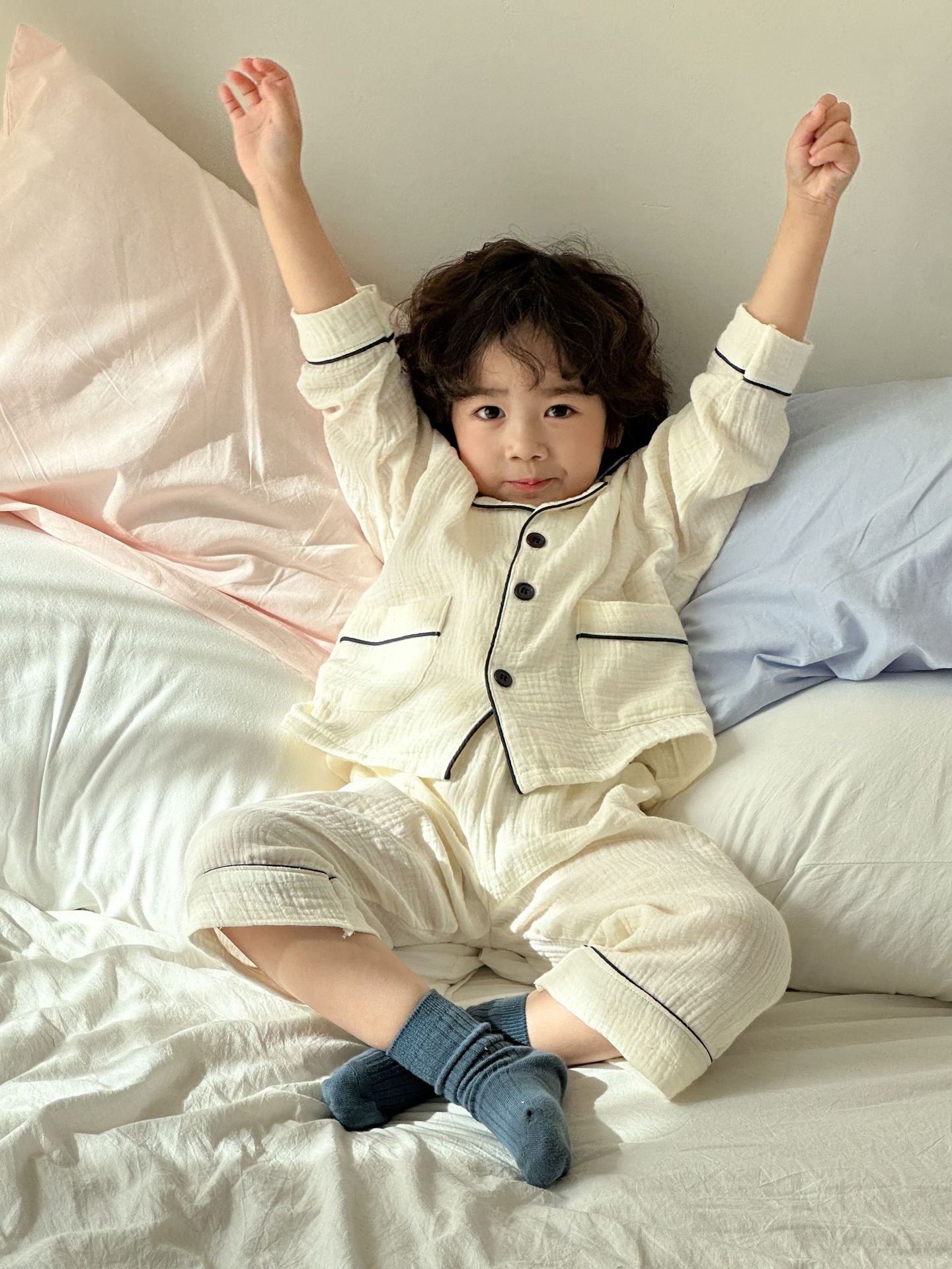 어린이 잠옷 순면 거즈 유형 A 2025 새로운 봄, 가을 소녀 소년 긴팔 양복 아기 가정 옷스토어 가기