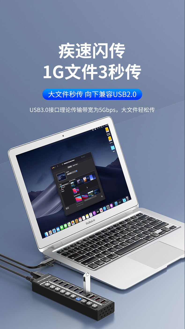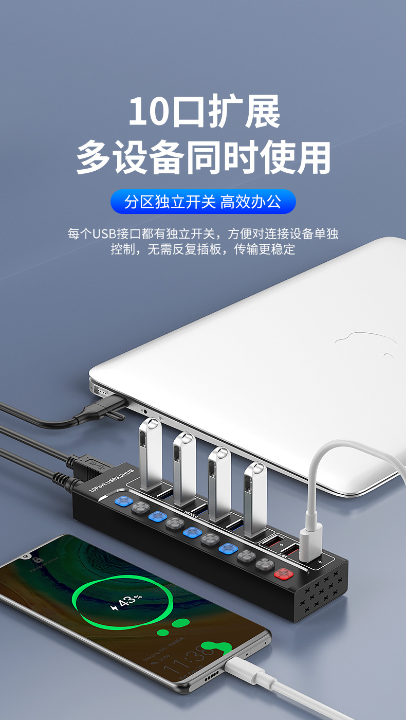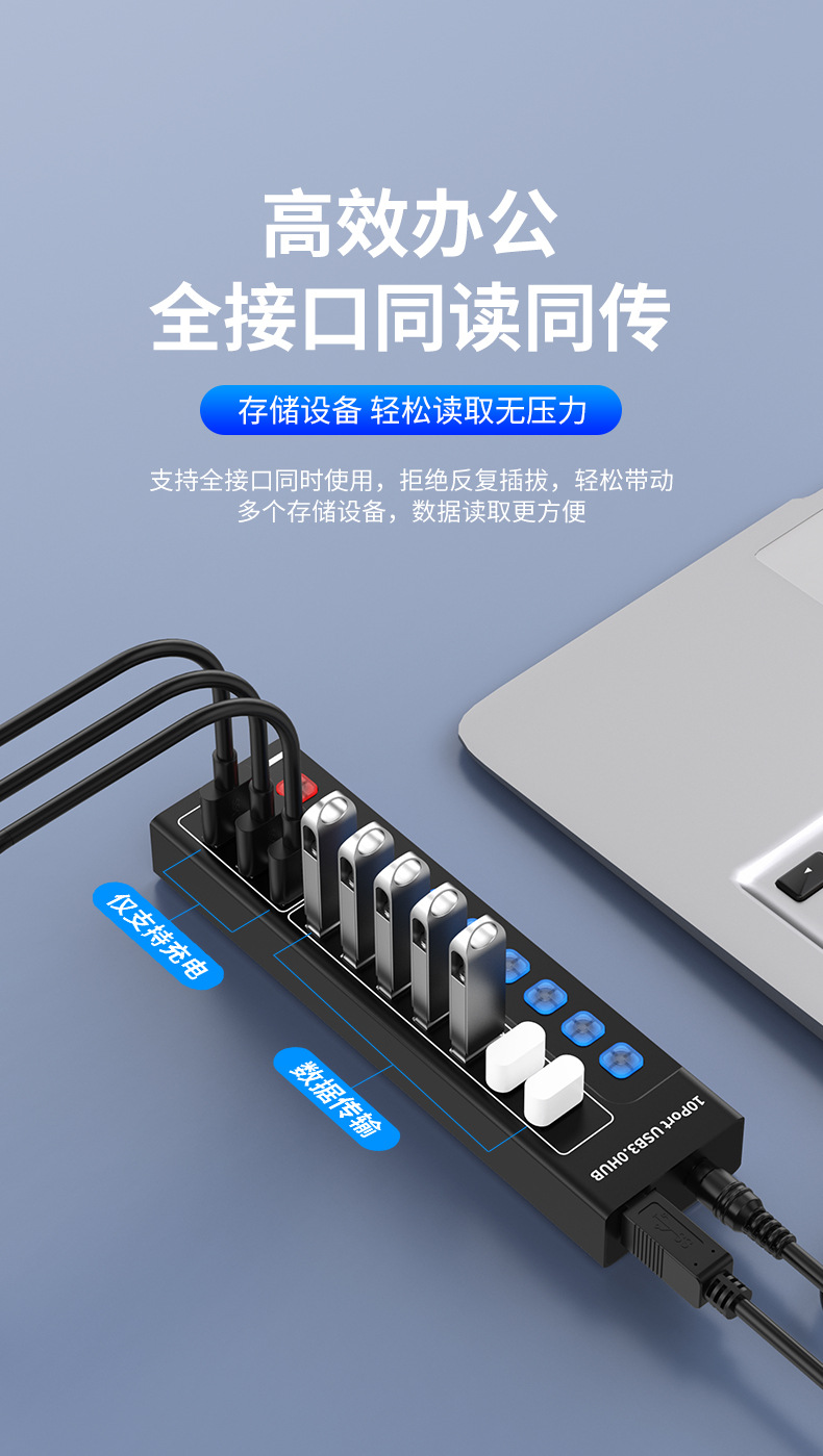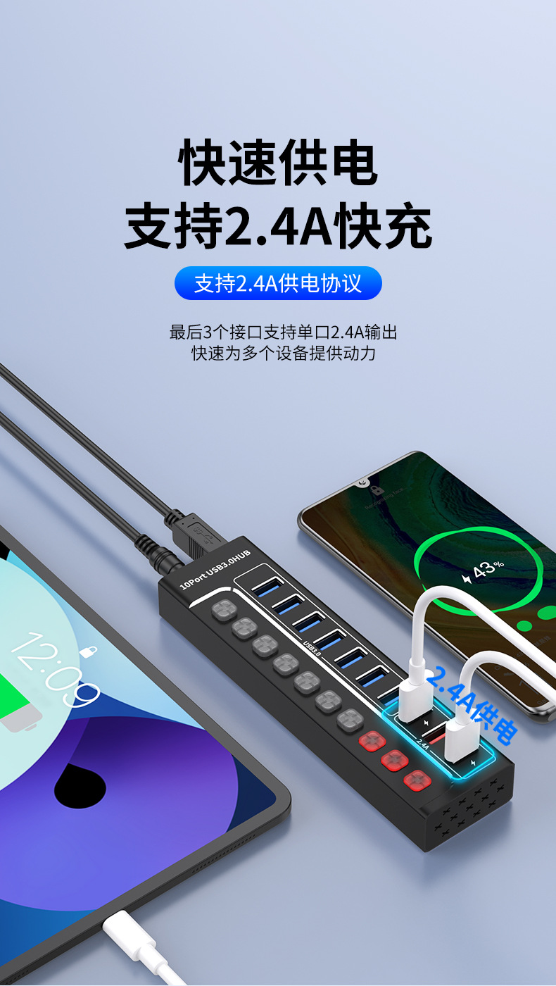 USB3.0 확장 7 포트 허브 그룹 제어 스위치 노트북 데스크톱 컴퓨터 스플리터 3 포트 2.4A 충전스토어 가기
