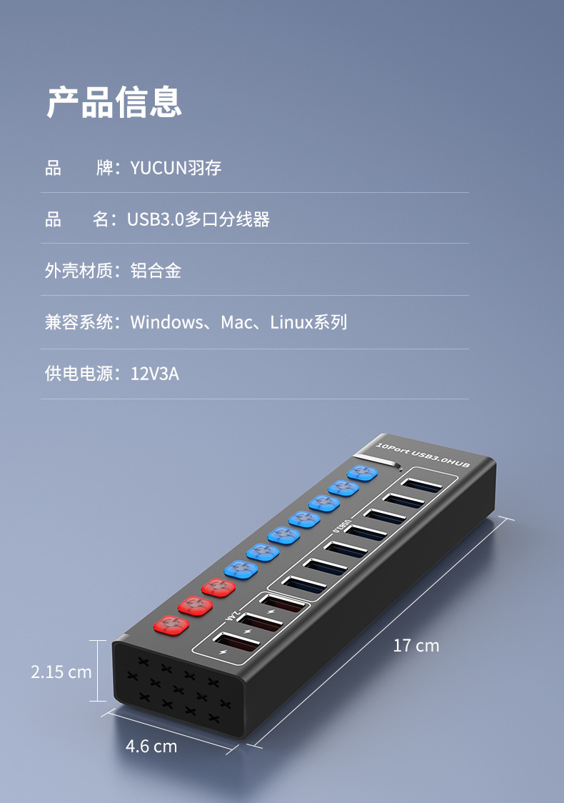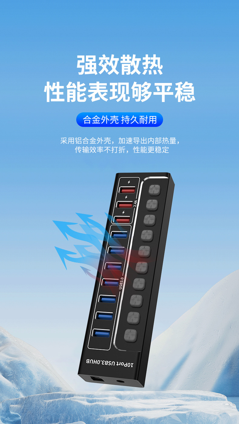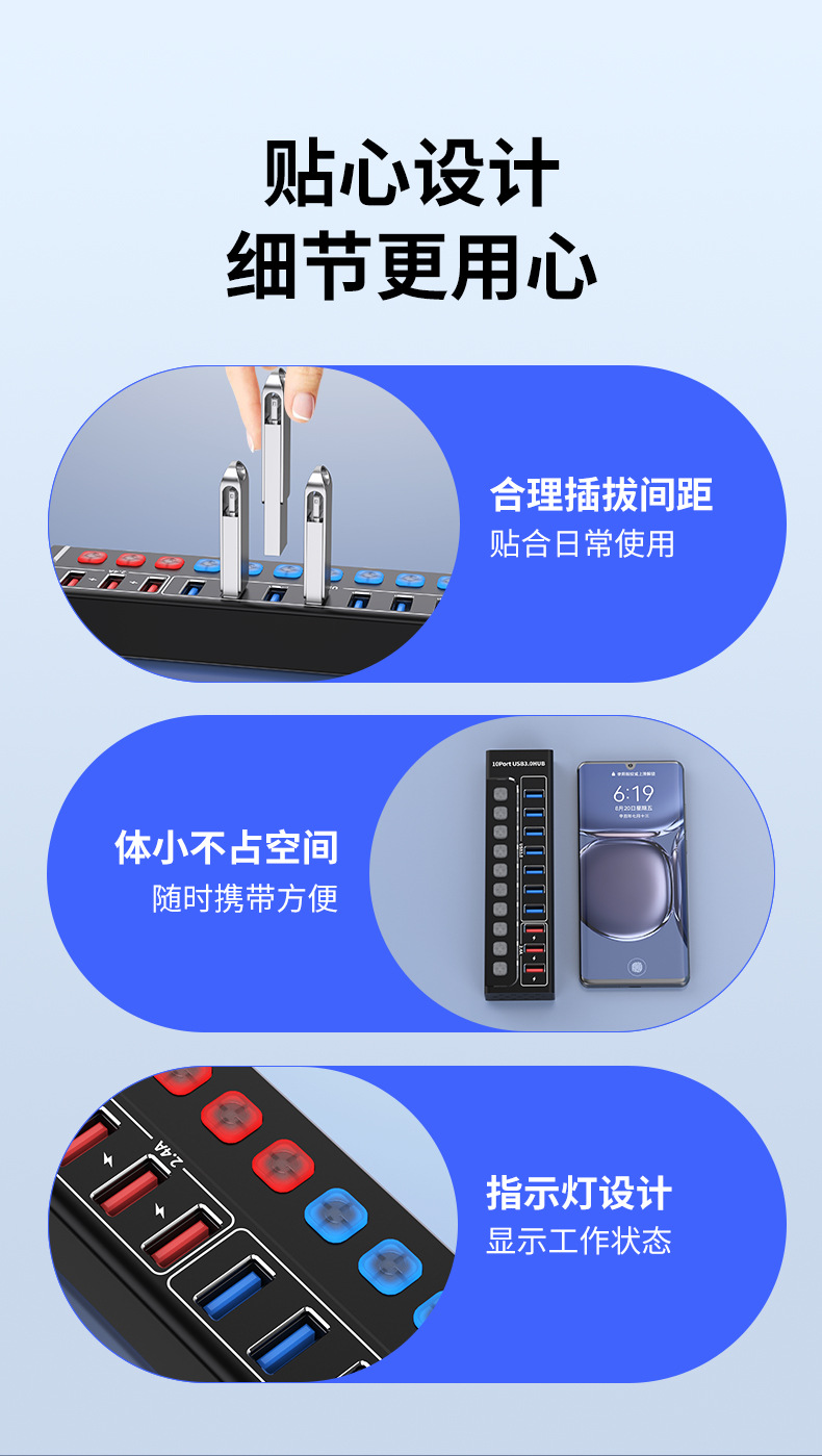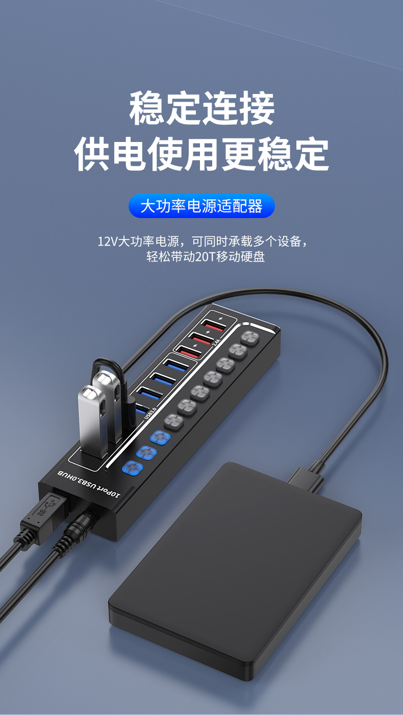 USB3.0 확장 7 포트 허브 그룹 제어 스위치 노트북 데스크톱 컴퓨터 스플리터 3 포트 2.4A 충전스토어 가기