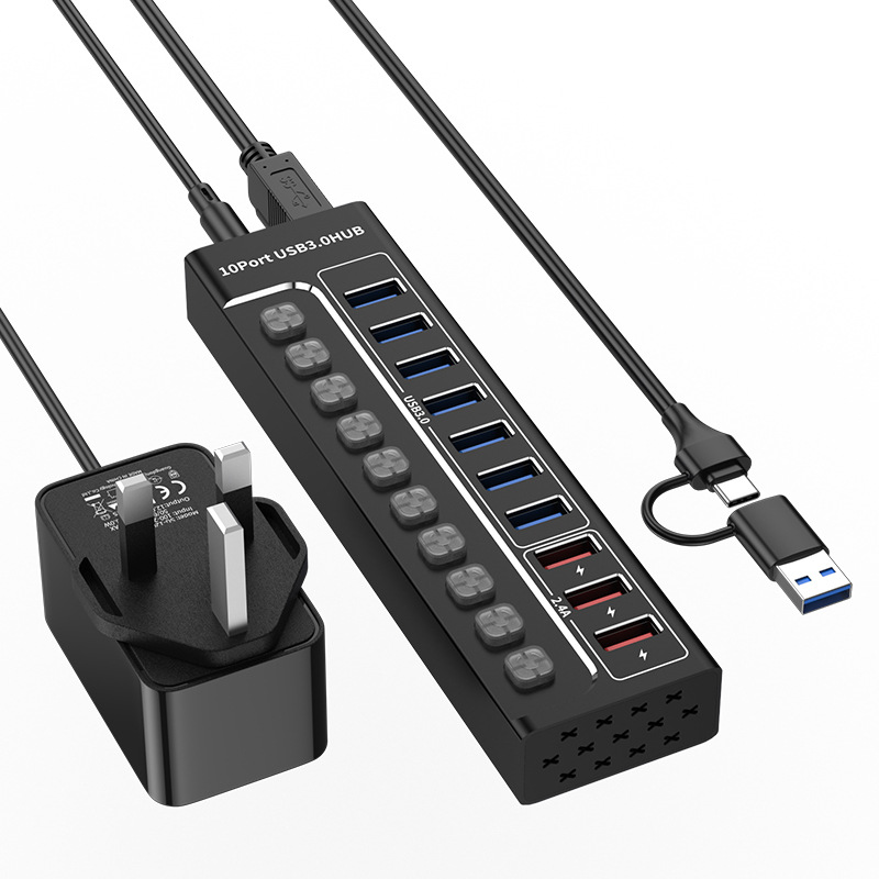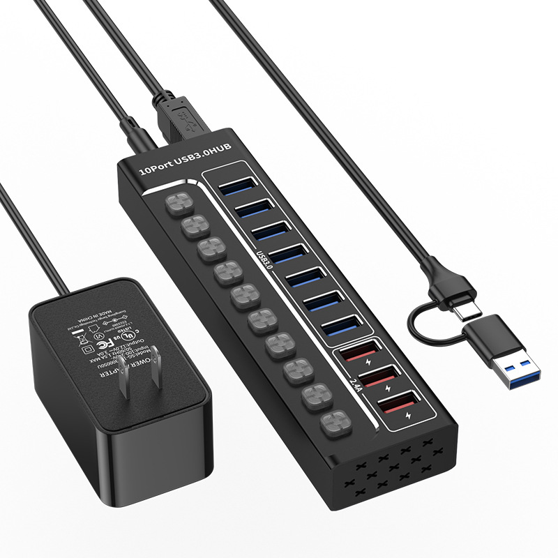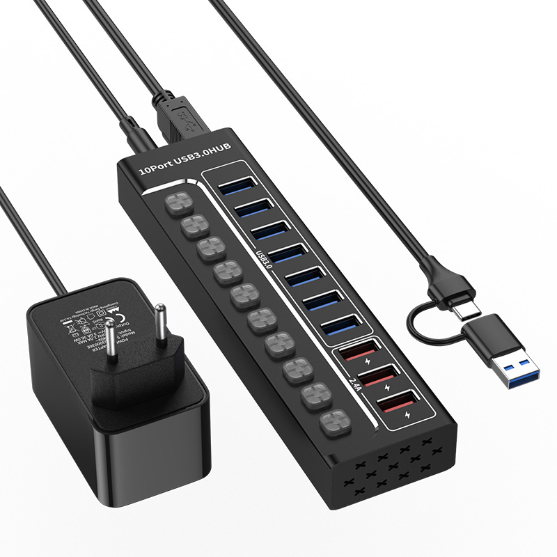 USB3.0 확장 7 포트 허브 그룹 제어 스위치 노트북 데스크톱 컴퓨터 스플리터 3 포트 2.4A 충전