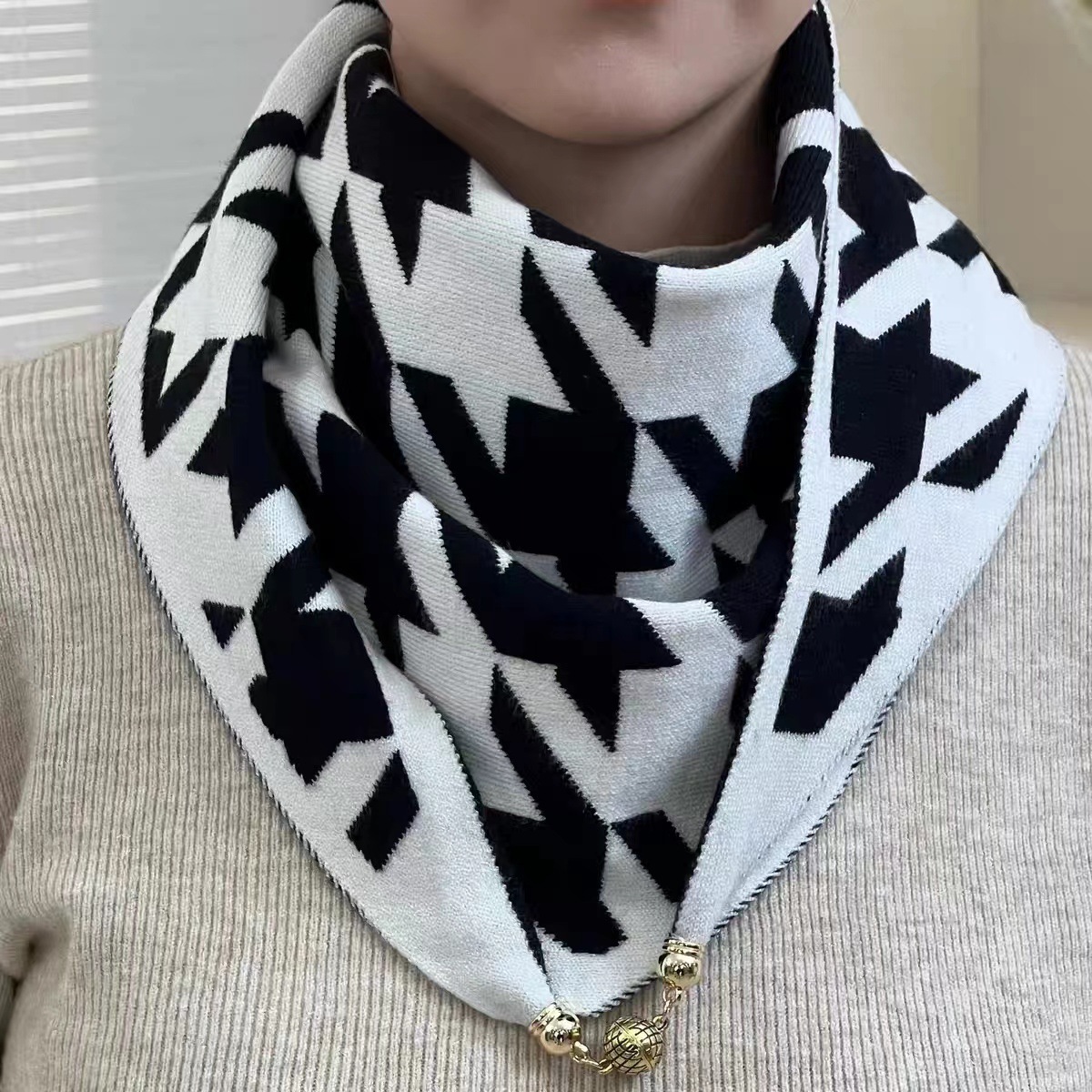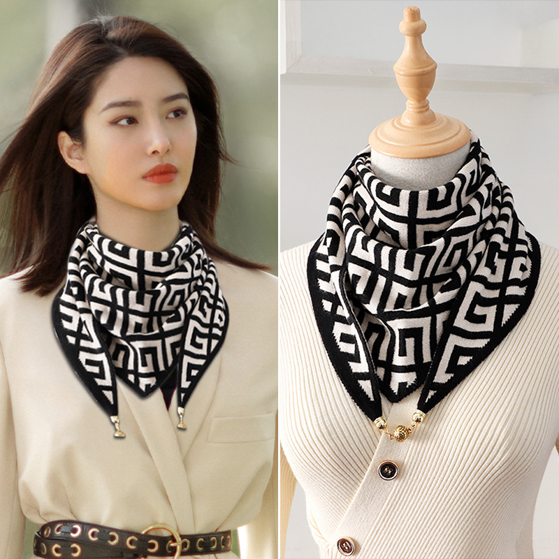 새로운 니트 마그네틱 버클 삼각형 스카프 다기능 마그네틱 버클 스카프 모든 매치 새로운 스타일 따뜻한 목 보호 서양식 장식 스카프스토어 가기