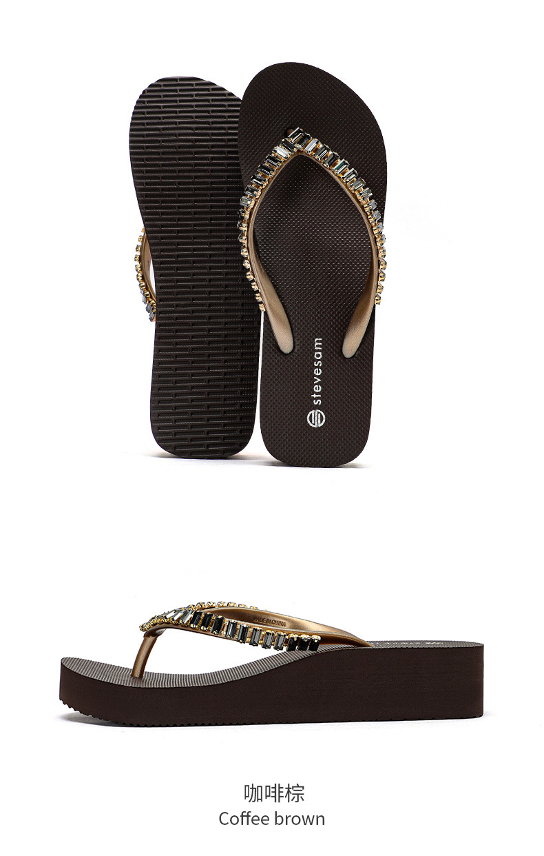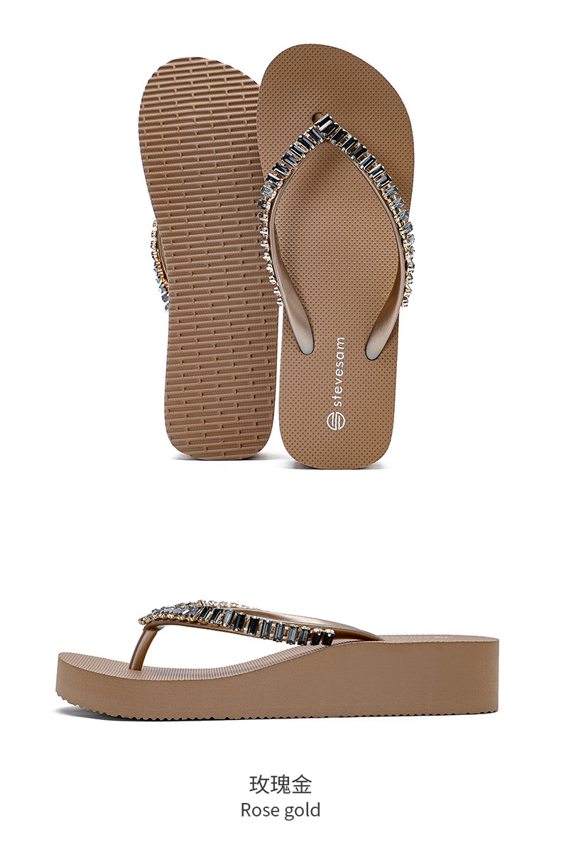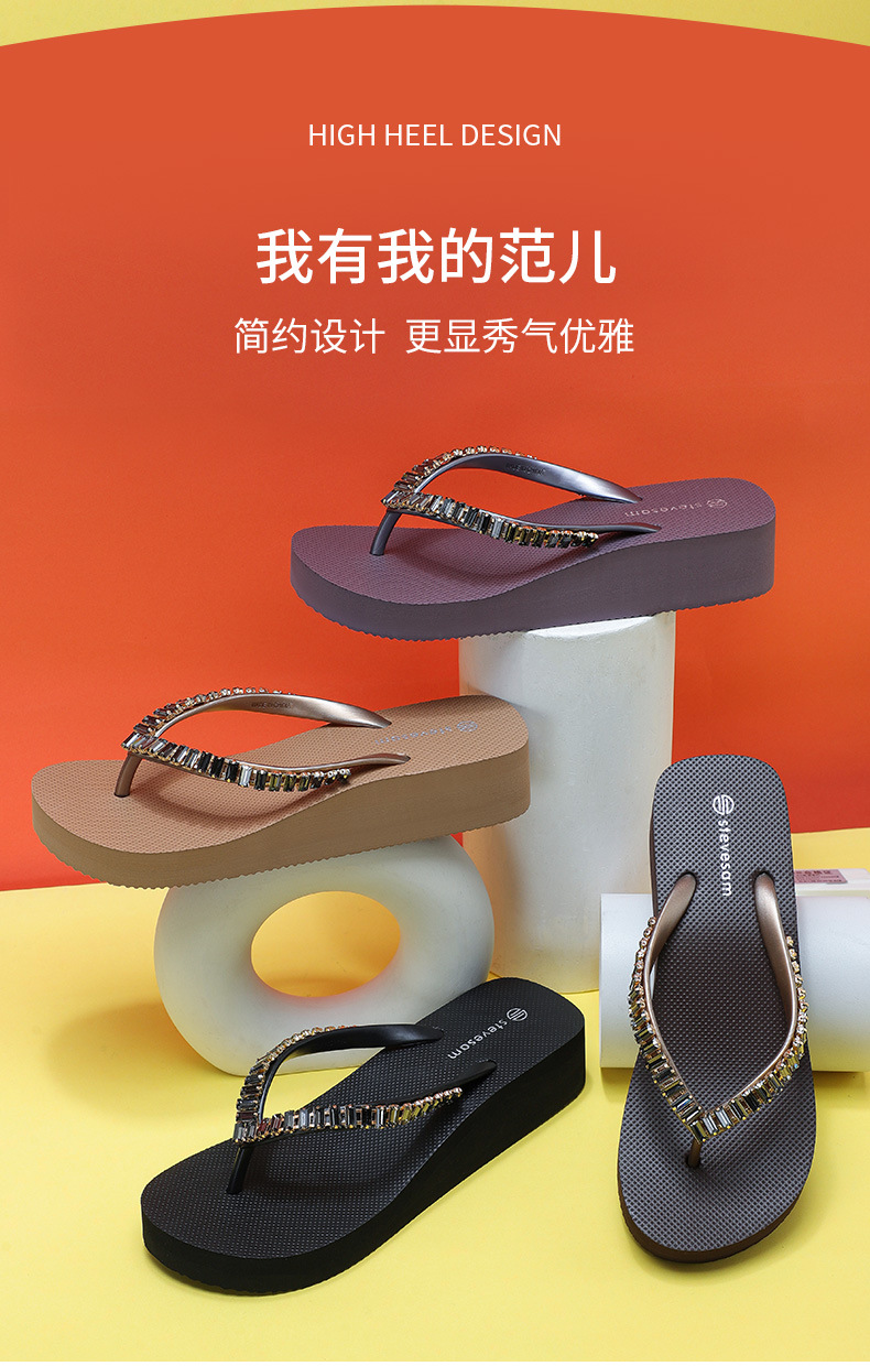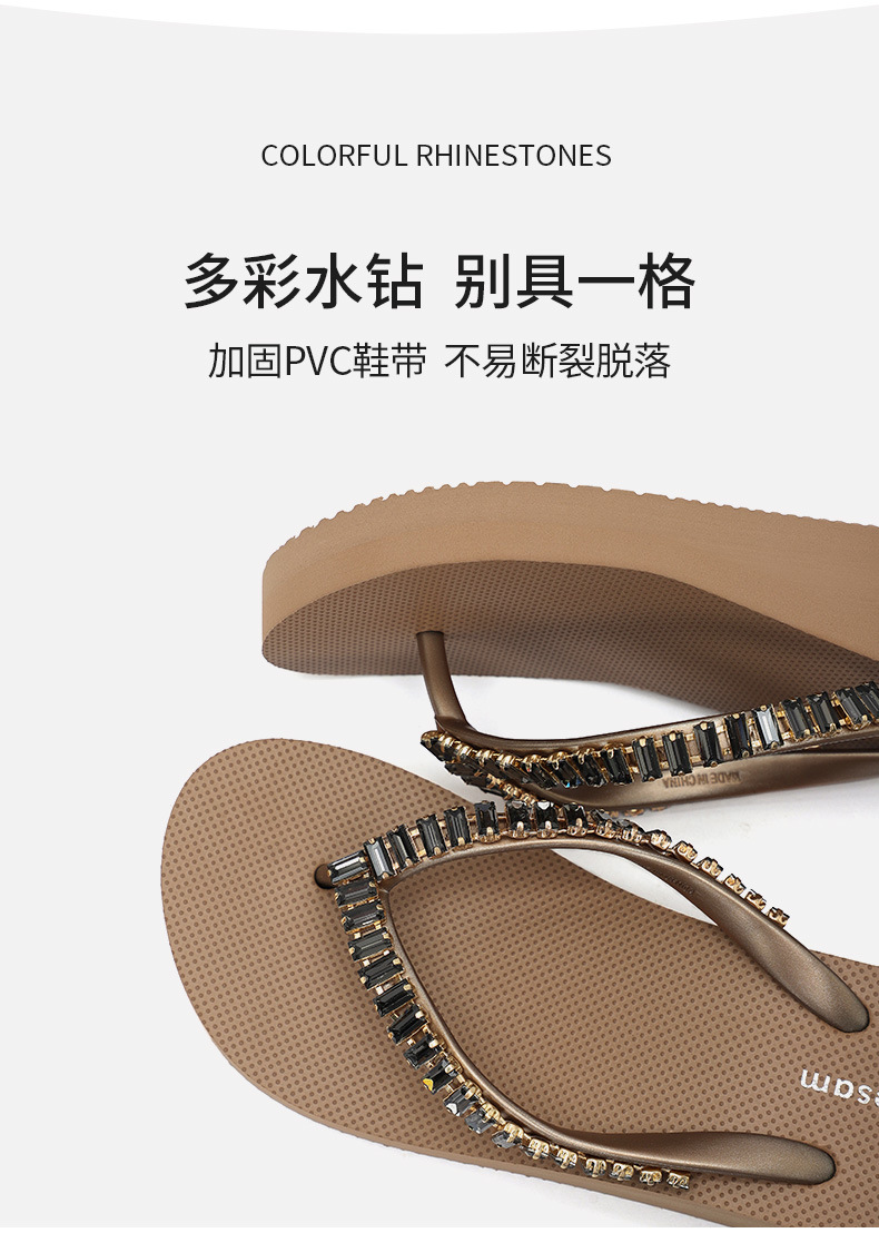 4CM Wedge Rhinestone Flip-Flops 여성 여름 새 복장 미끄럼 방지 해변 소프트 하단 상승 플립 플롭스토어 가기