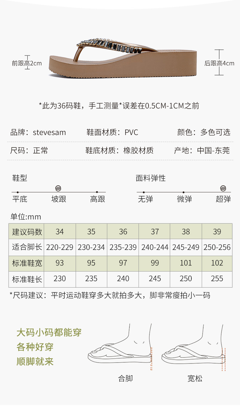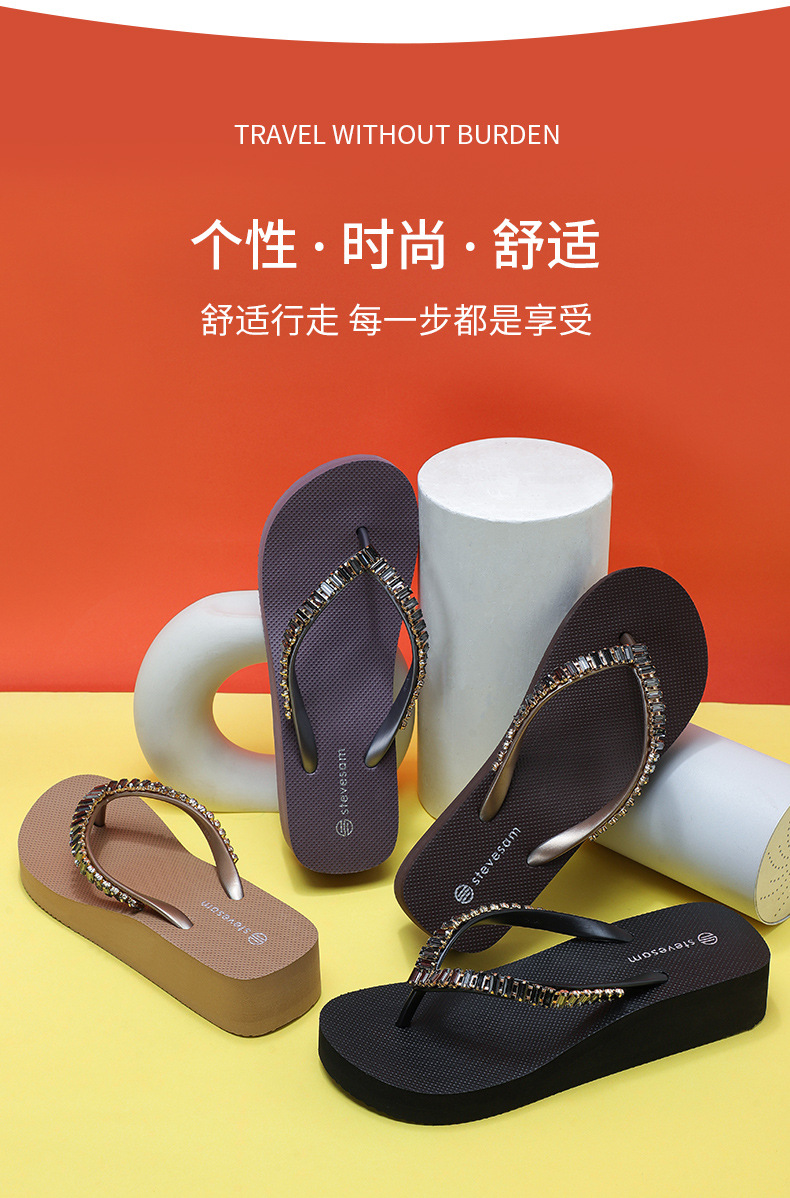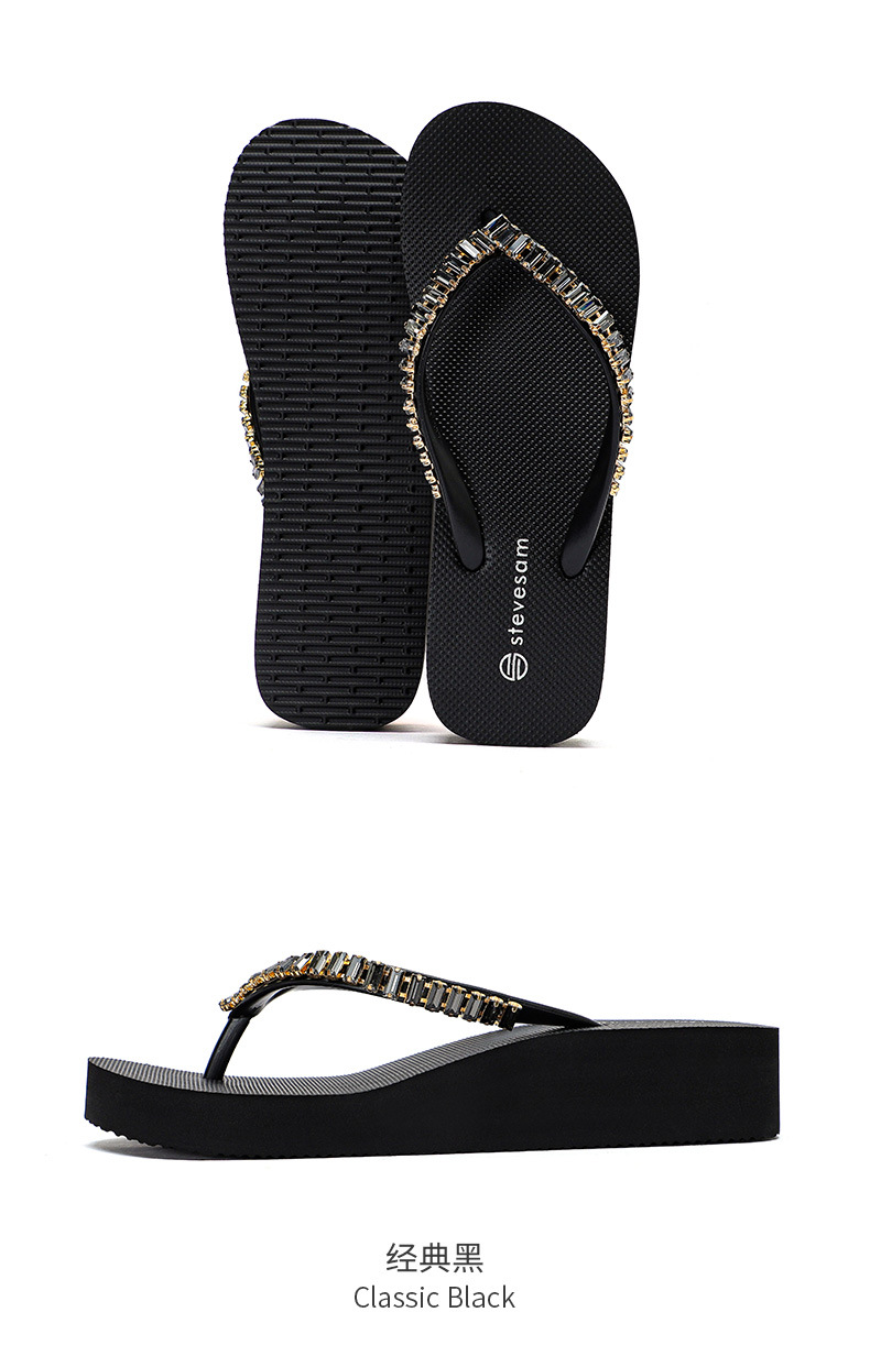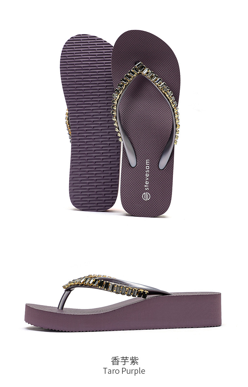 4CM Wedge Rhinestone Flip-Flops 여성 여름 새 복장 미끄럼 방지 해변 소프트 하단 상승 플립 플롭스토어 가기