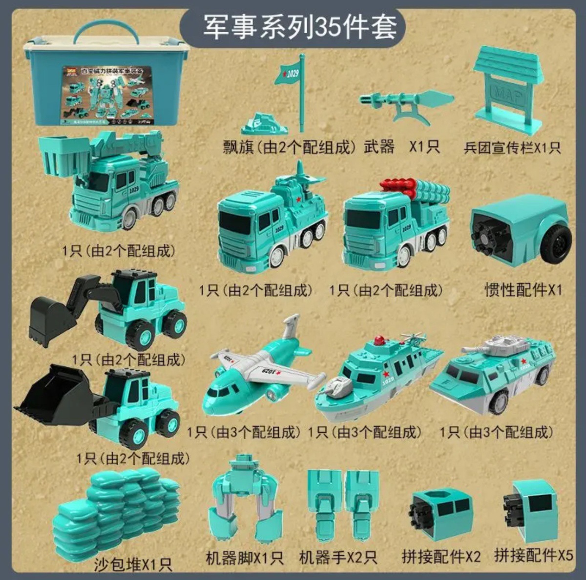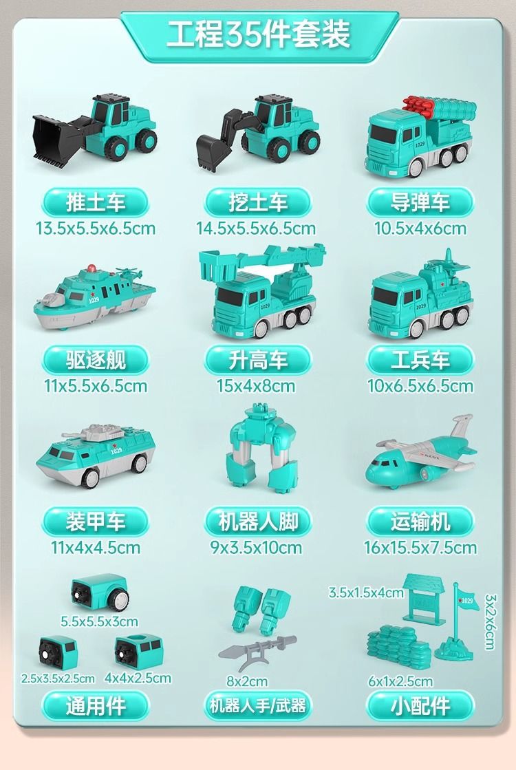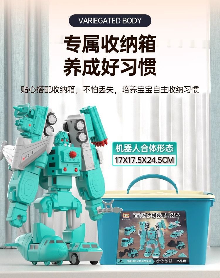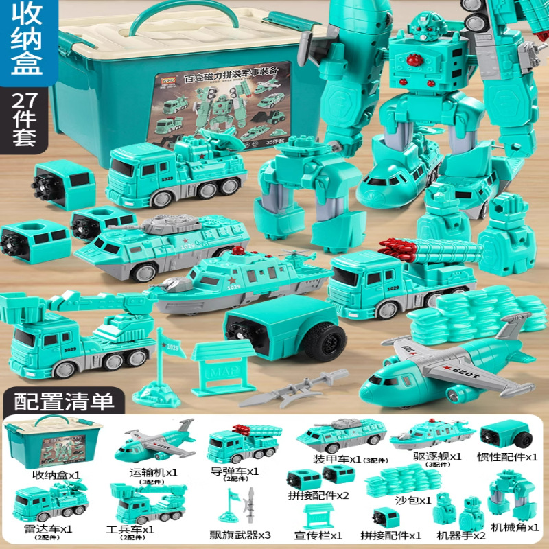 • 밀리터리 시리즈 [럭셔리 상위 버전] 자기 조립 로봇 - 35종 세트 + 수납통 (8종의 자동차와 로봇 조립 가능)