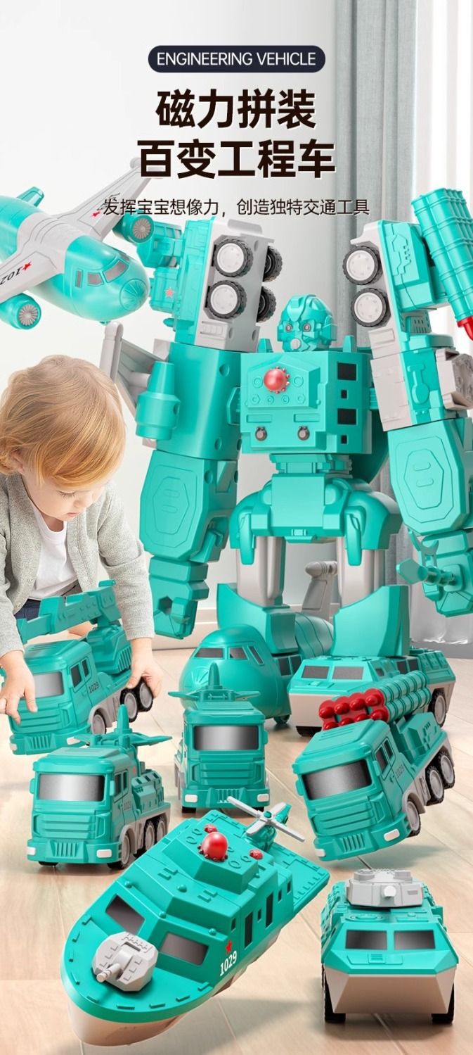 어린이 자기 바느질 장난감 자동차 소년의 빌딩 블록 조립 공학 차량 변형 퍼즐 자기 가변 로봇스토어 가기