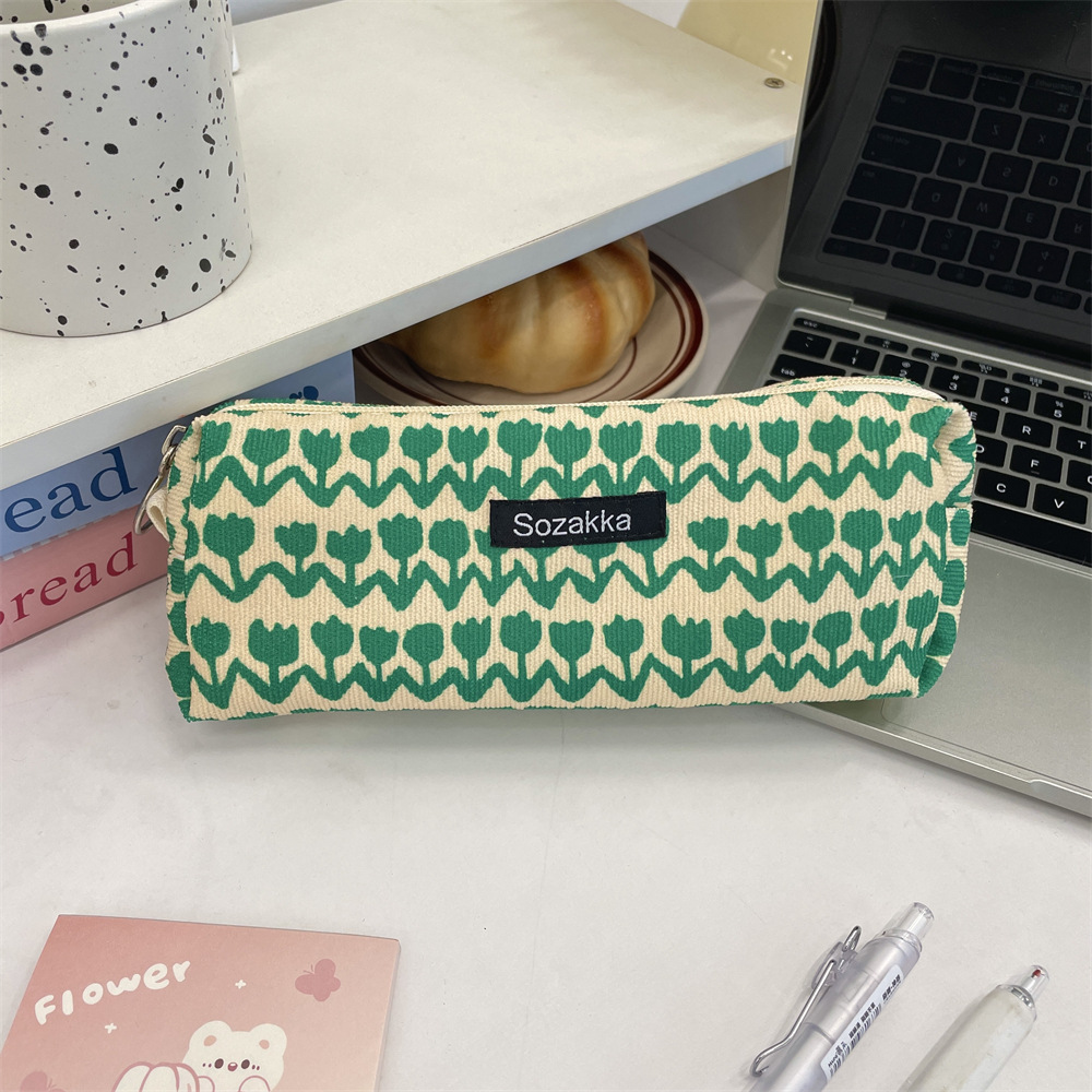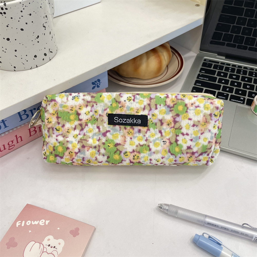 411273 새로운 빈티지 꽃 연필 케이스 대용량 학생 클래스 휴대용 연필 케이스 메이크업 가방 여성