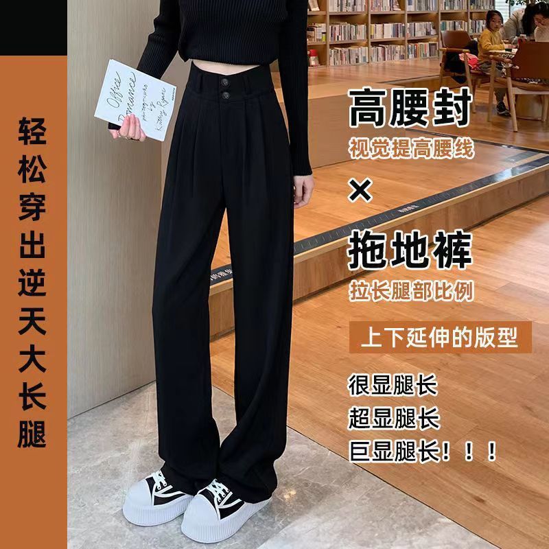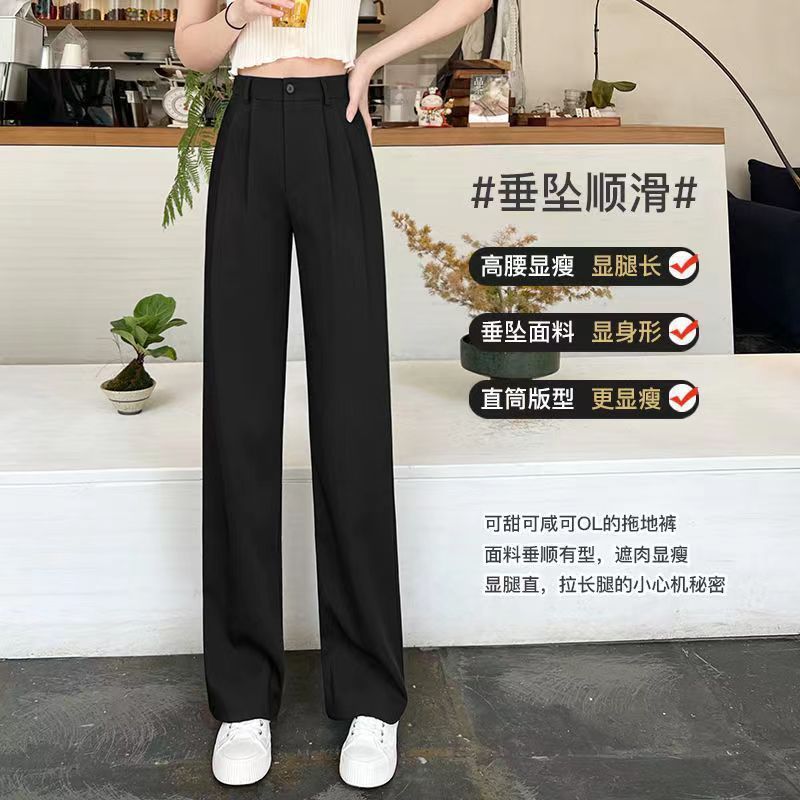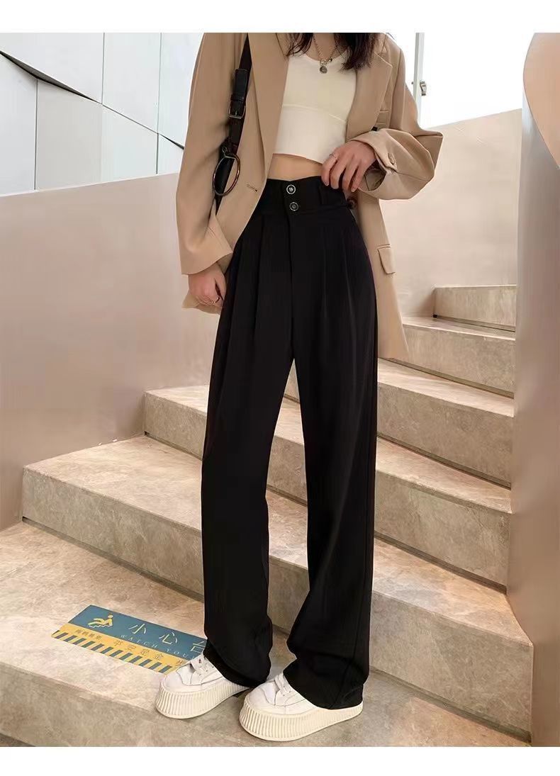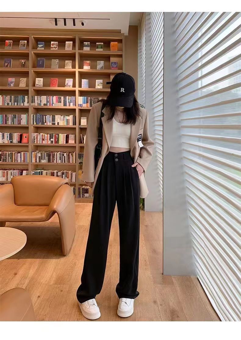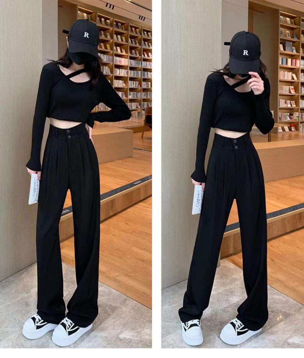 세트 넓은 다리 바지 여학생 높은 허리 더깅 슬림 봄과 가을 느슨한 캐주얼 바지 블랙