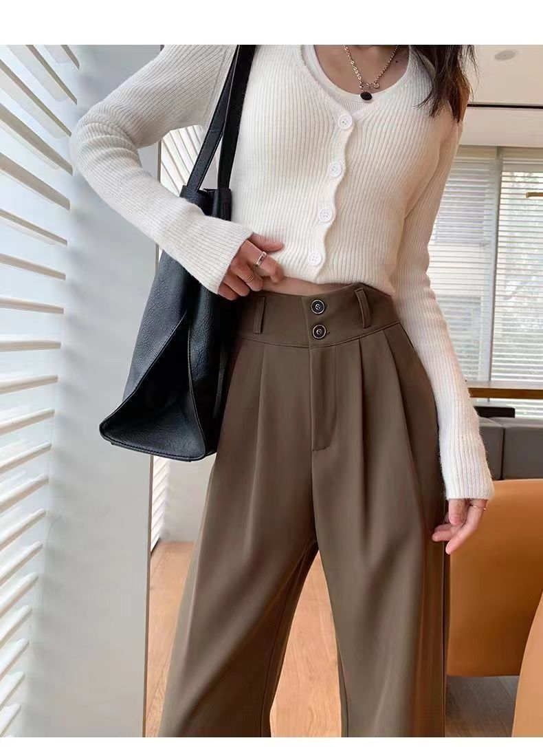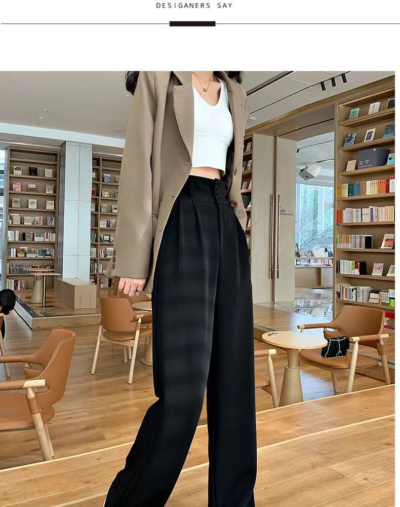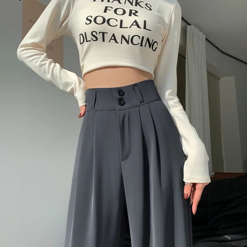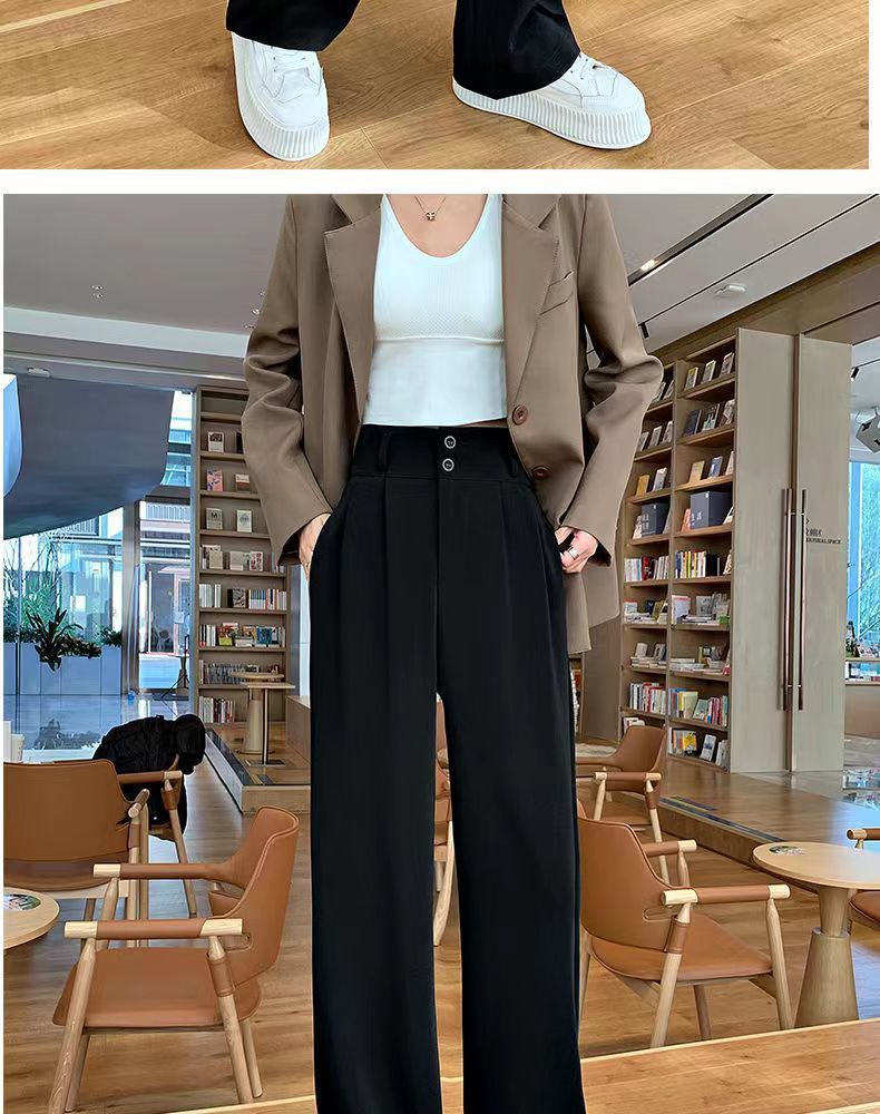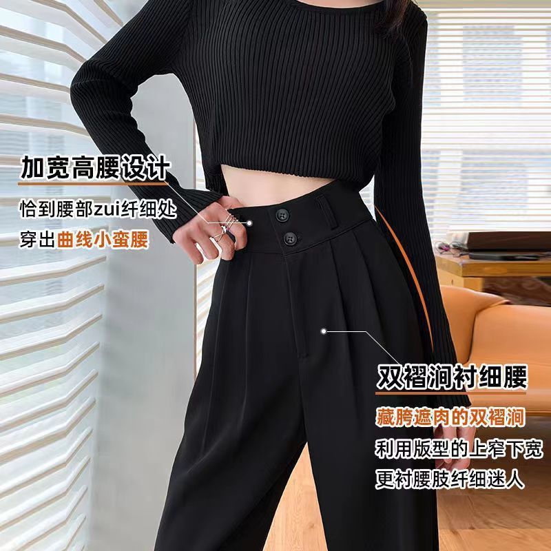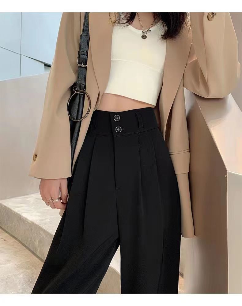 세트 넓은 다리 바지 여학생 높은 허리 더깅 슬림 봄과 가을 느슨한 캐주얼 바지 블랙