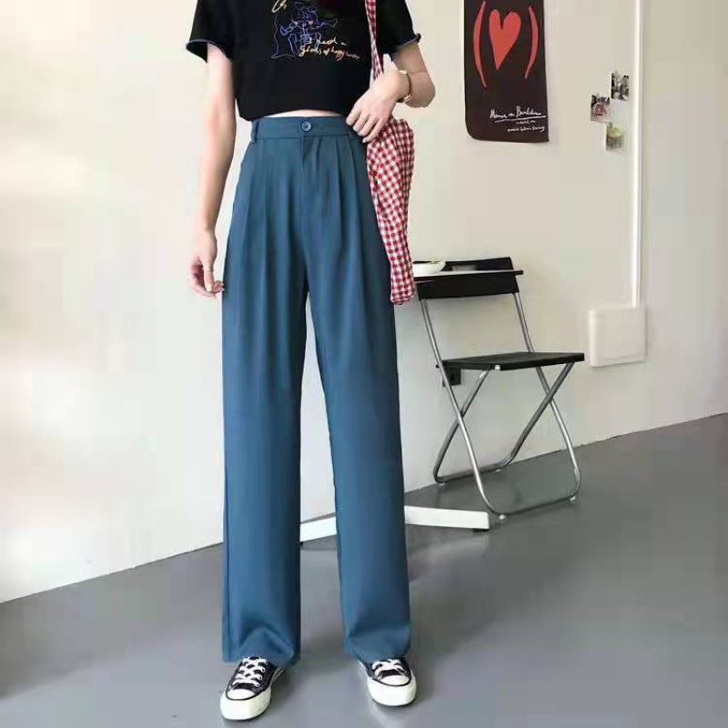 세트 넓은 다리 바지 여학생 높은 허리 더깅 슬림 봄과 가을 느슨한 캐주얼 바지 블랙스토어 가기