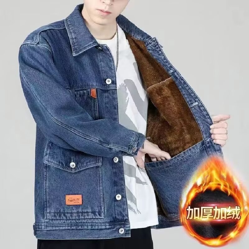 남성용 데님 코트 겨울 기모 두꺼운 고급 루즈 플러스 사이즈 감기 방풍 방지 멀티 포켓 탑스토어 가기