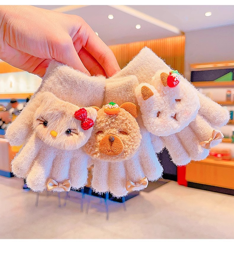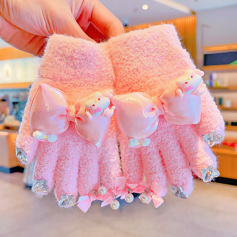 어린이 장갑 소녀 가을과 겨울 새 소녀 Kulomi 다섯 손가락 따뜻한 감기 방지 아기 손가락 어린이 장갑