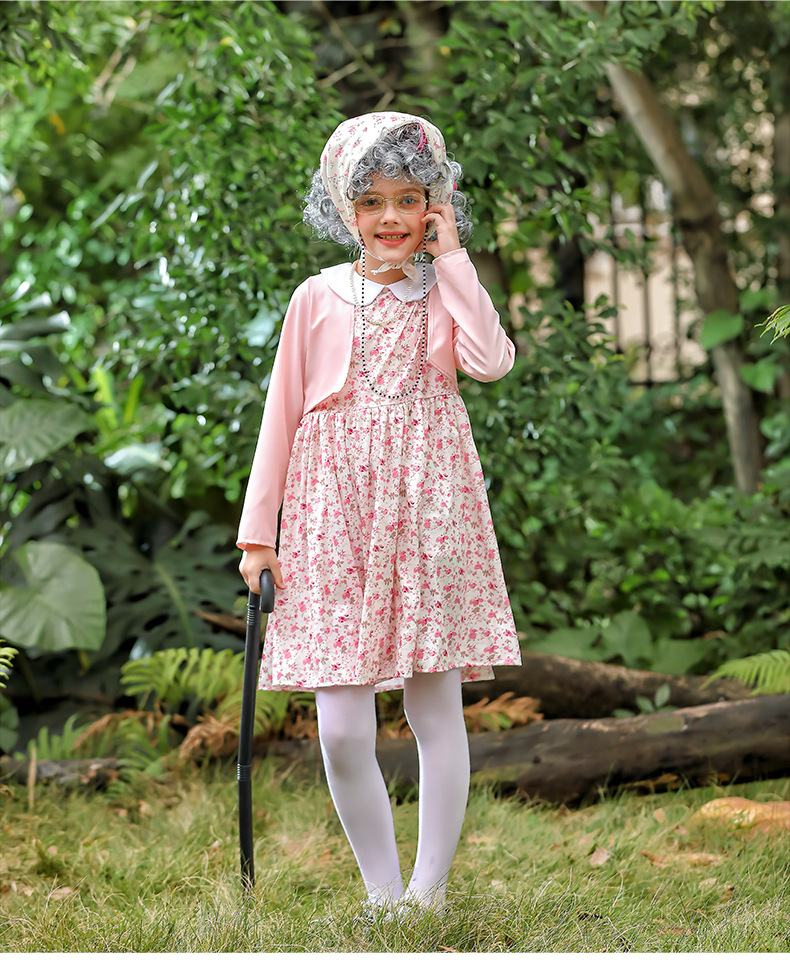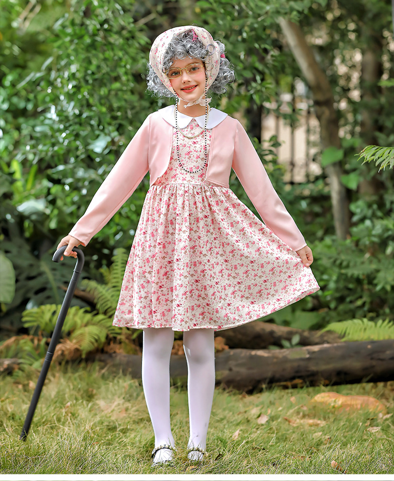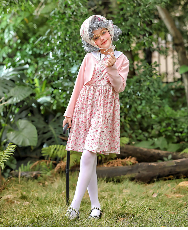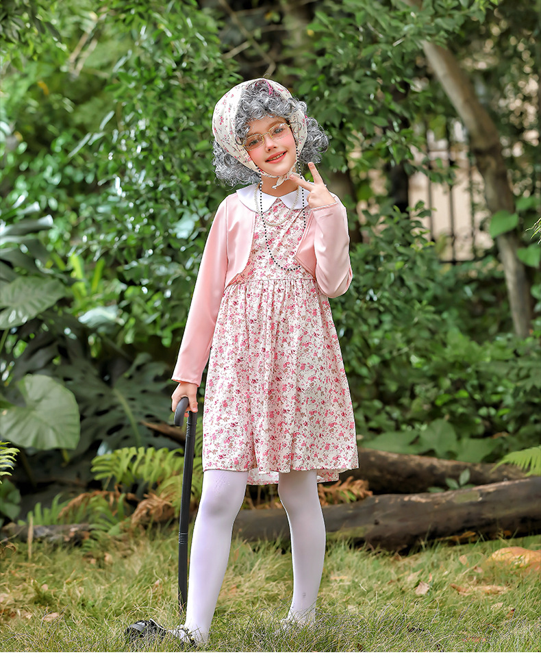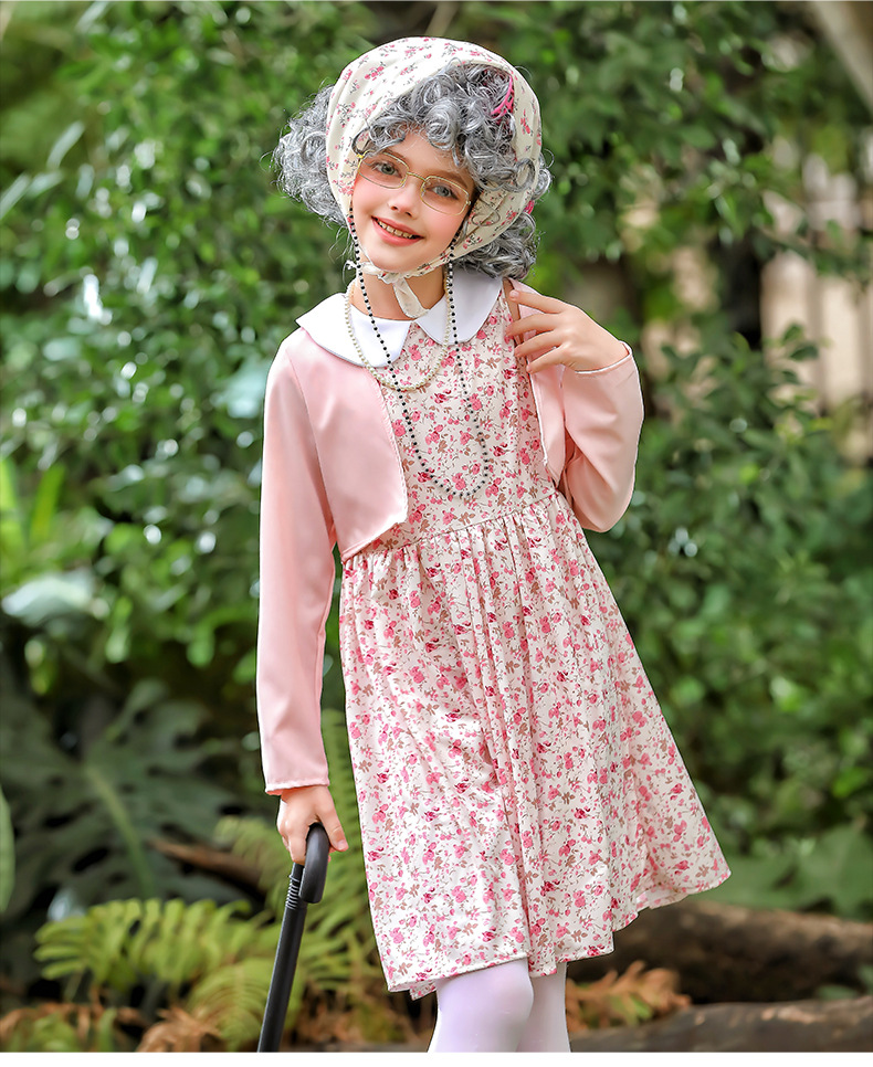 카니발 어린이 의상 꽃 치마 100 일 학교 할머니 세트 재미 원피스 의상 cos 할머니 의상