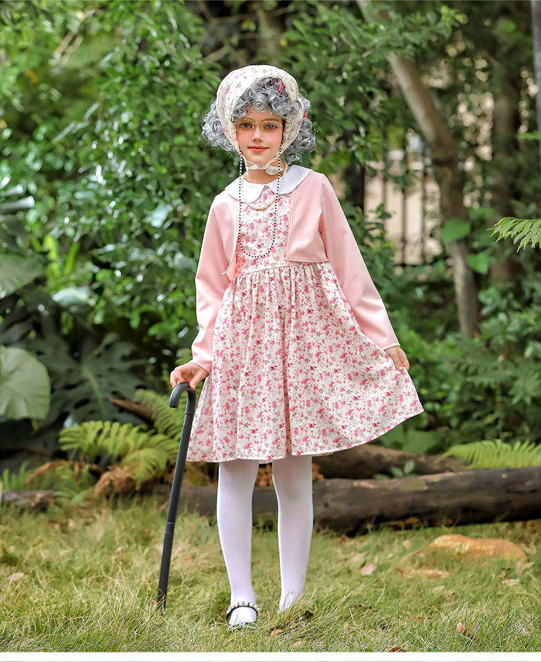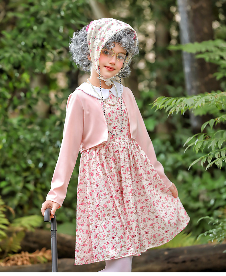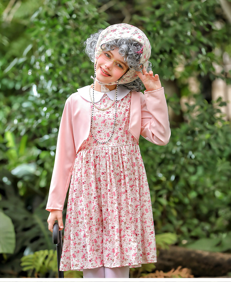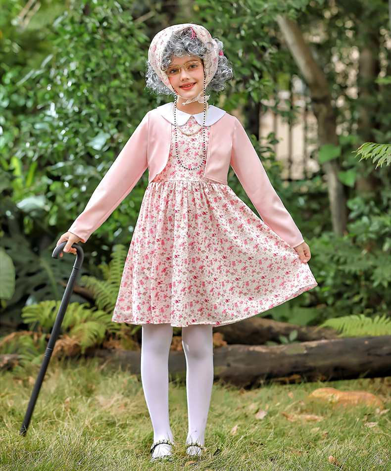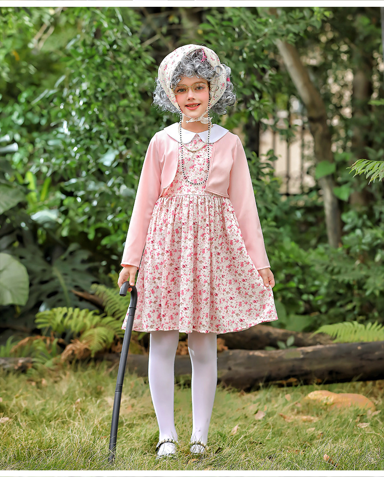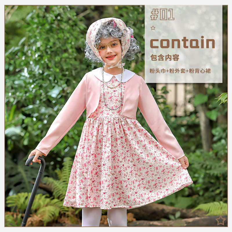 카니발 어린이 의상 꽃 치마 100 일 학교 할머니 세트 재미 원피스 의상 cos 할머니 의상