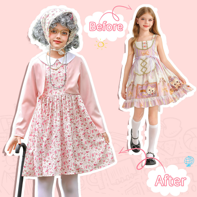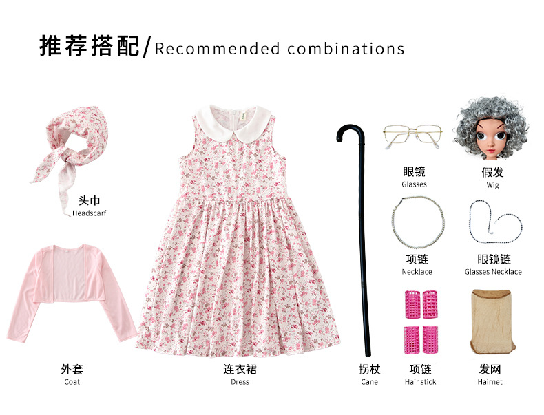 카니발 어린이 의상 꽃 치마 100 일 학교 할머니 세트 재미 원피스 의상 cos 할머니 의상스토어 가기