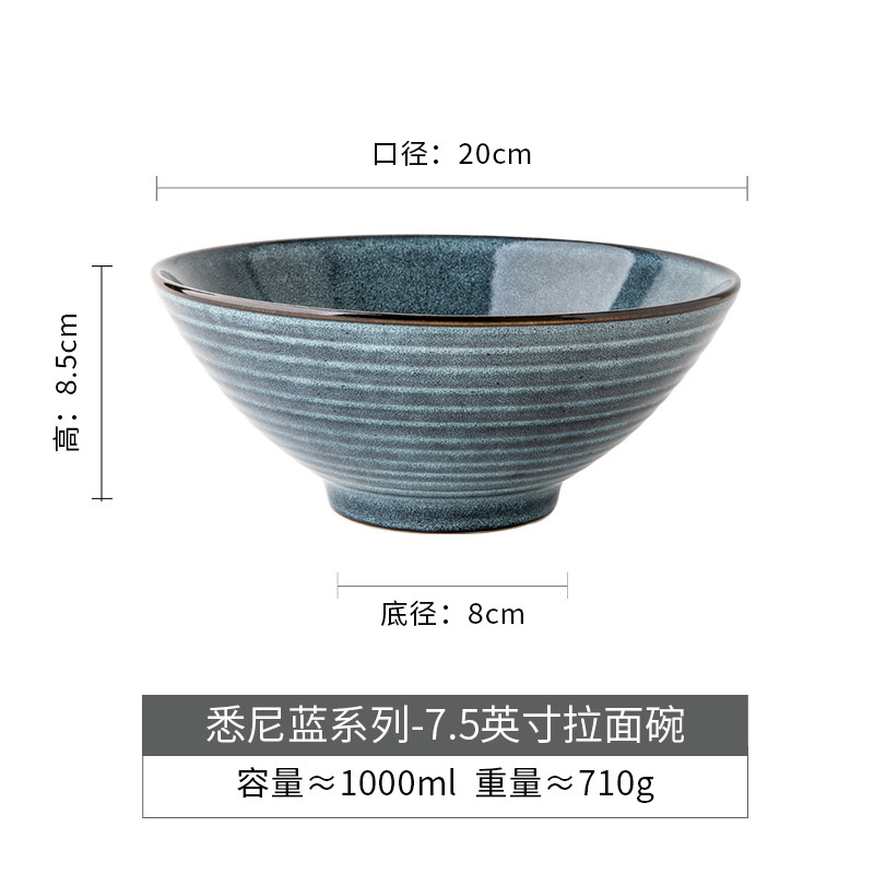 HNXM224 골목 꼬리 높은 색상 값! 시드니 블루 국수 그릇 8 인치 대나무 모자라면 그릇 세라믹 그릇 수프스토어 가기