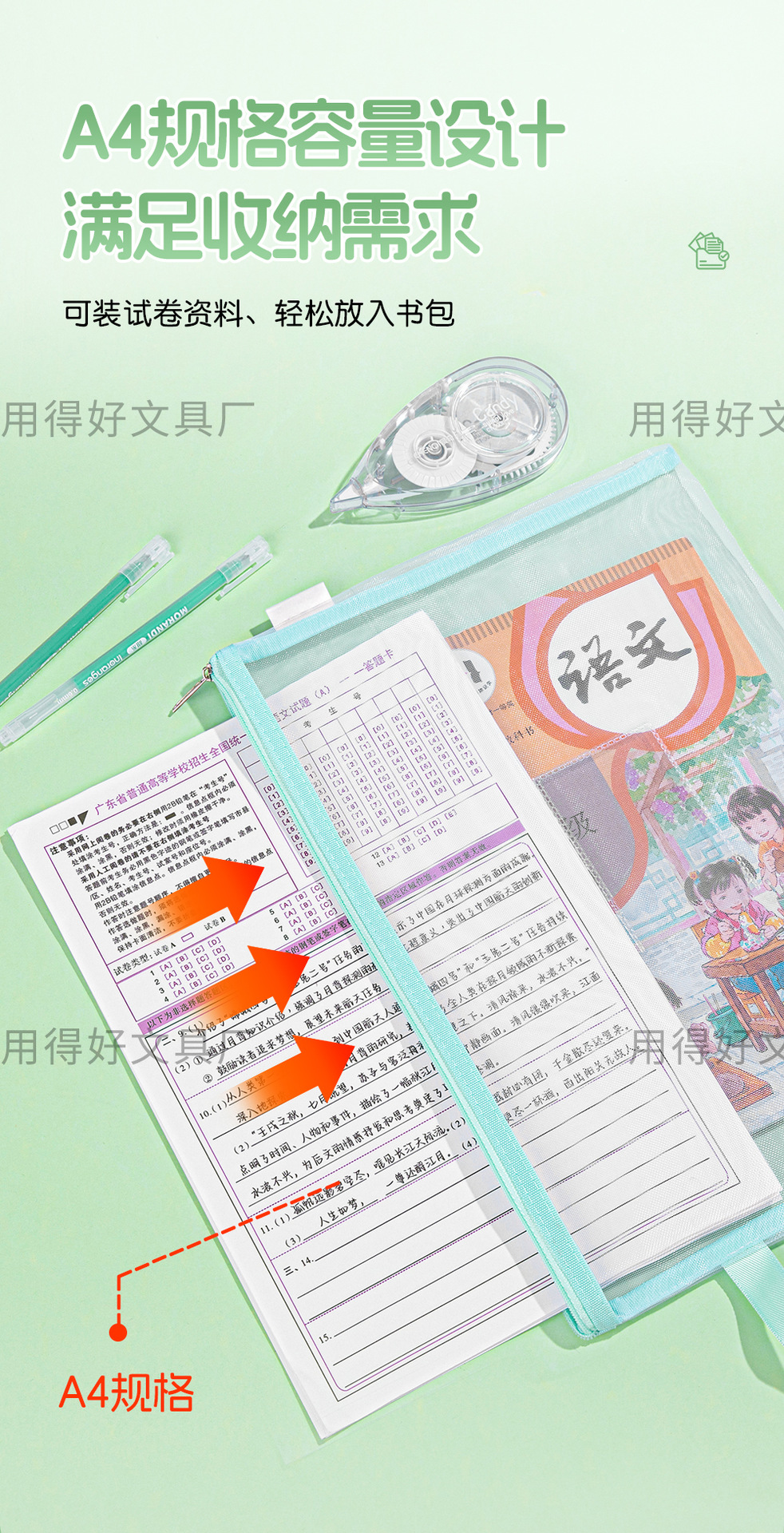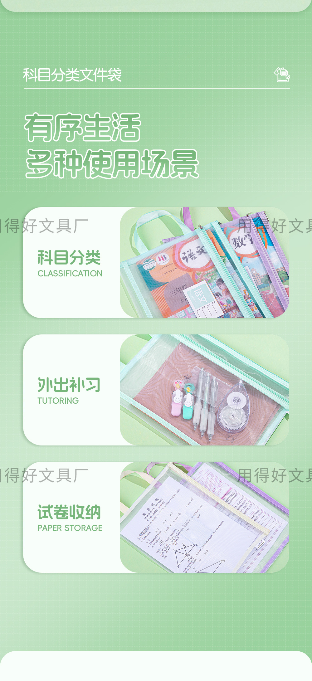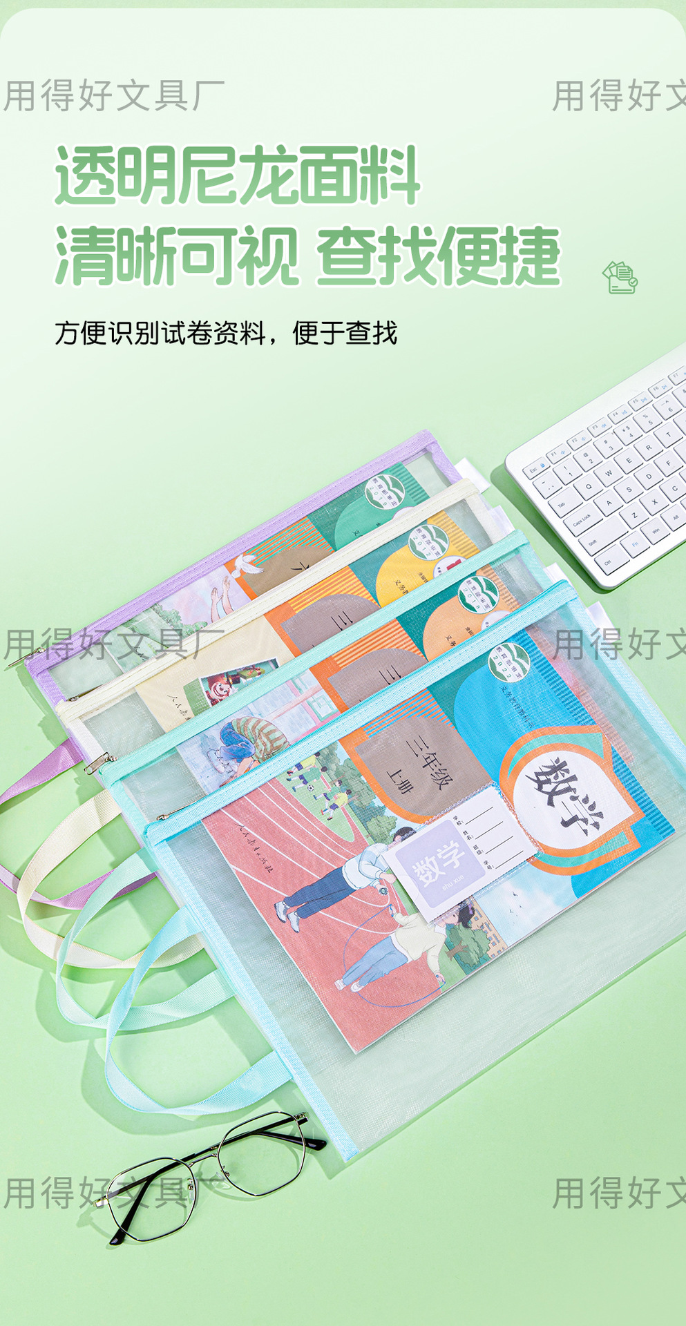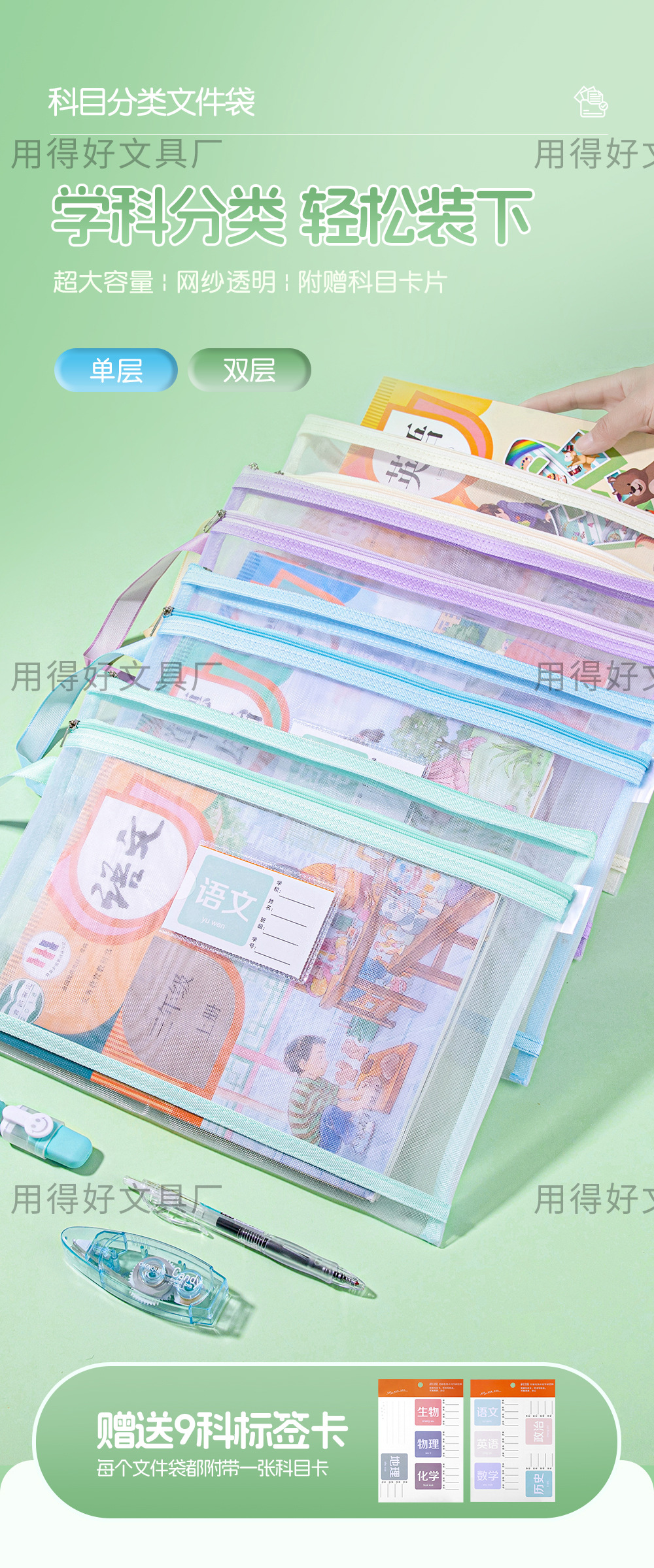 과목 분류 파일 가방, 이중 메쉬 가방, 지퍼가 달린 학생용 수납 가방, 대용량 지퍼 가방, 휴대용스토어 가기