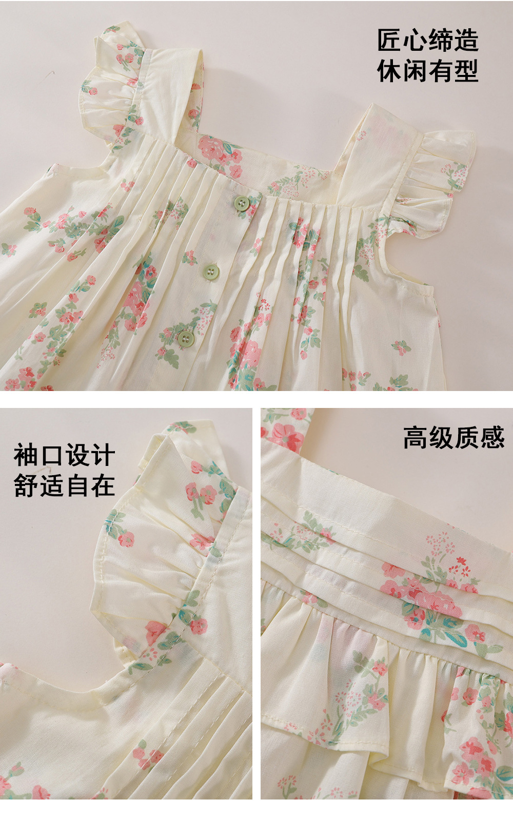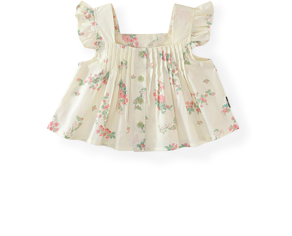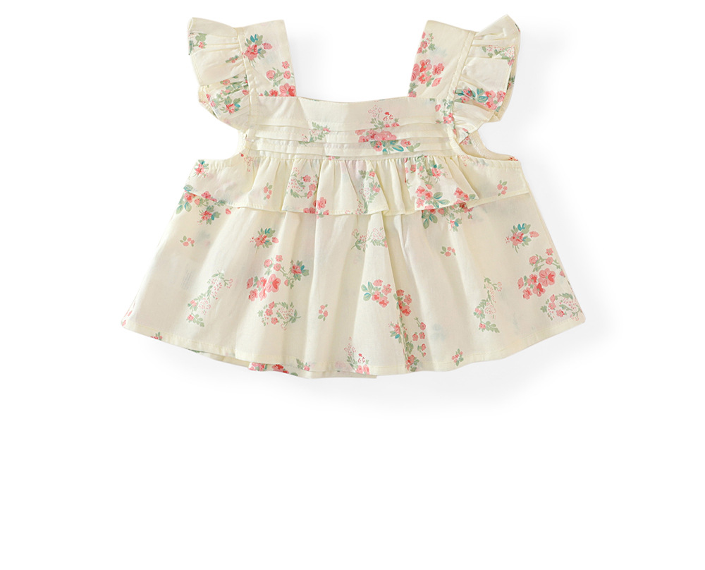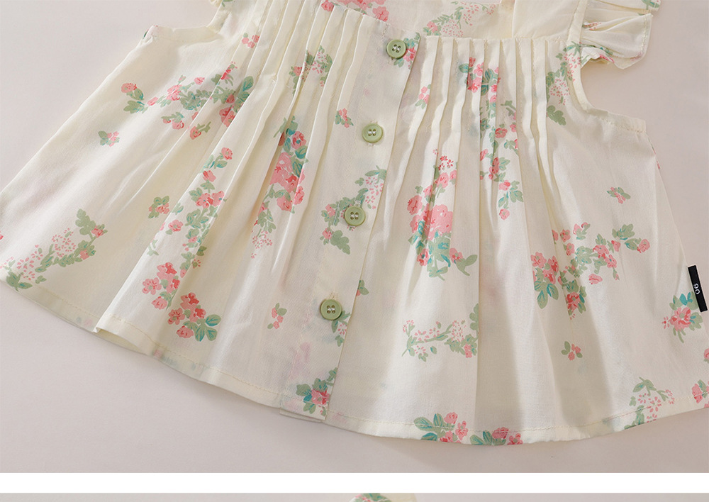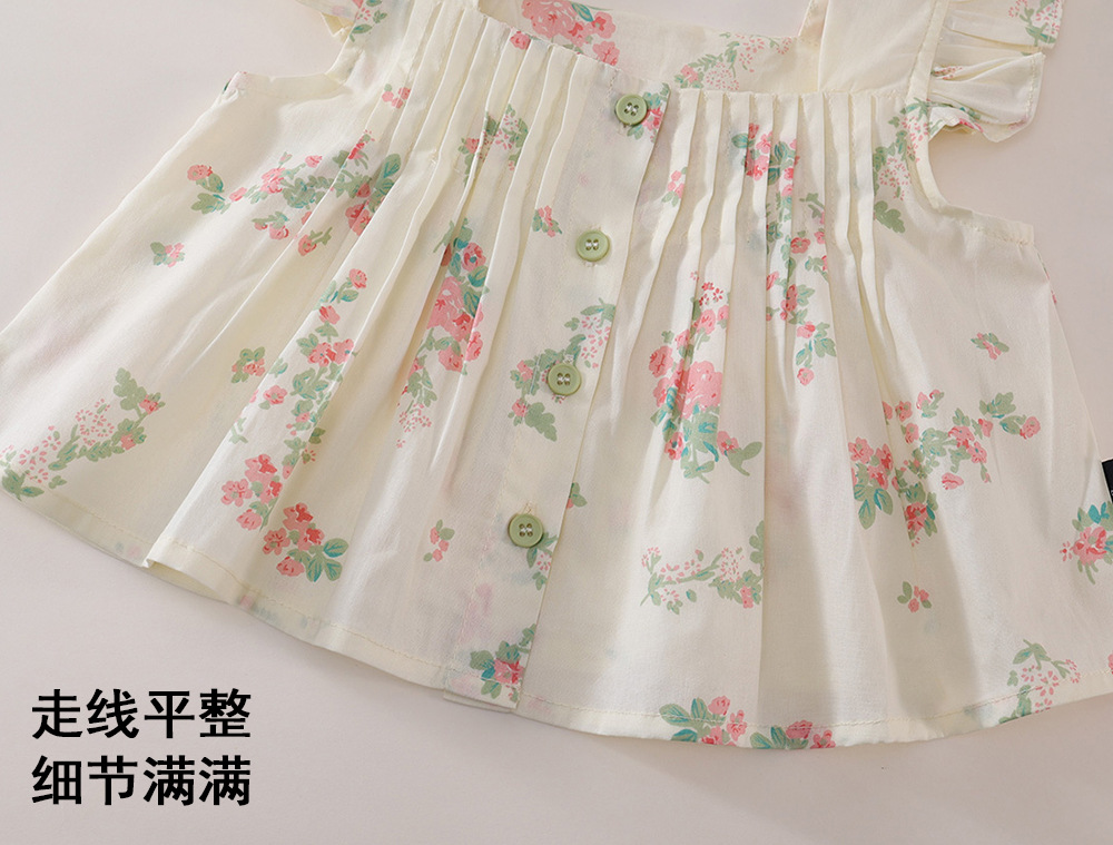 MDD 소녀 2025 여름 새로운 셔츠 어린이 프랑스 달콤한 비행 소매 꽃 인형 셔츠 반바지 세트스토어 가기