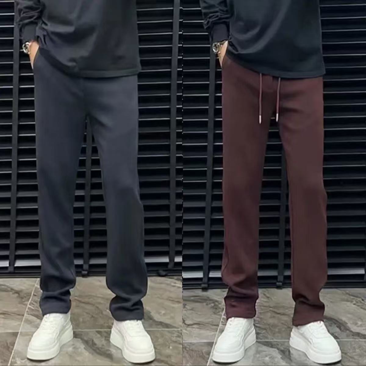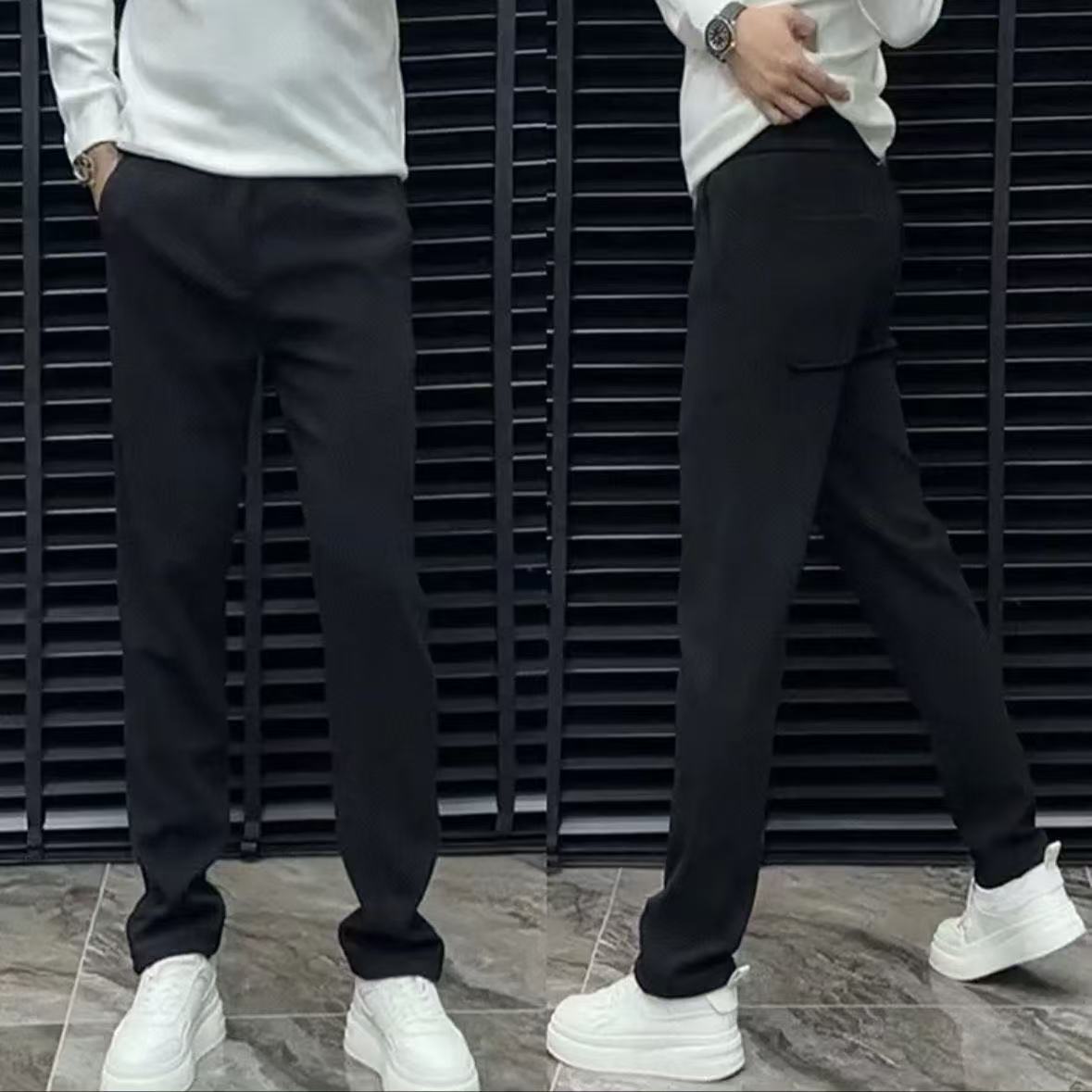 가을 겨울 남성용 유럽 가벼운 럭셔리 고품질 드레이프 캐주얼 바지, 심플 트렌디 브랜드 스트레이트 팬츠, 다용도 스트레치 스포츠 바지스토어 가기