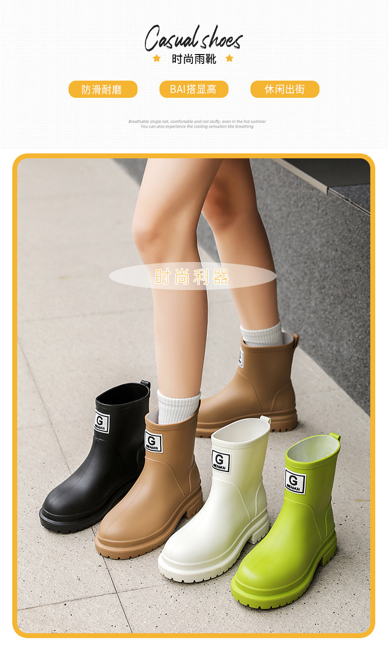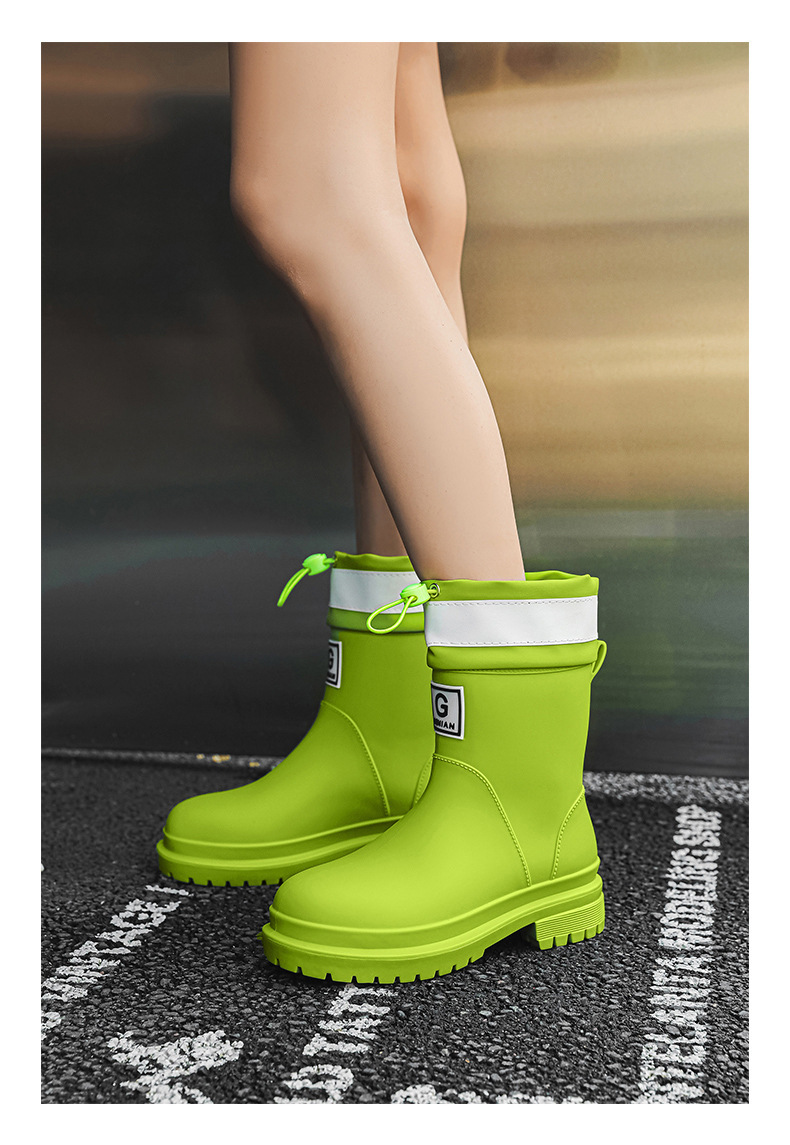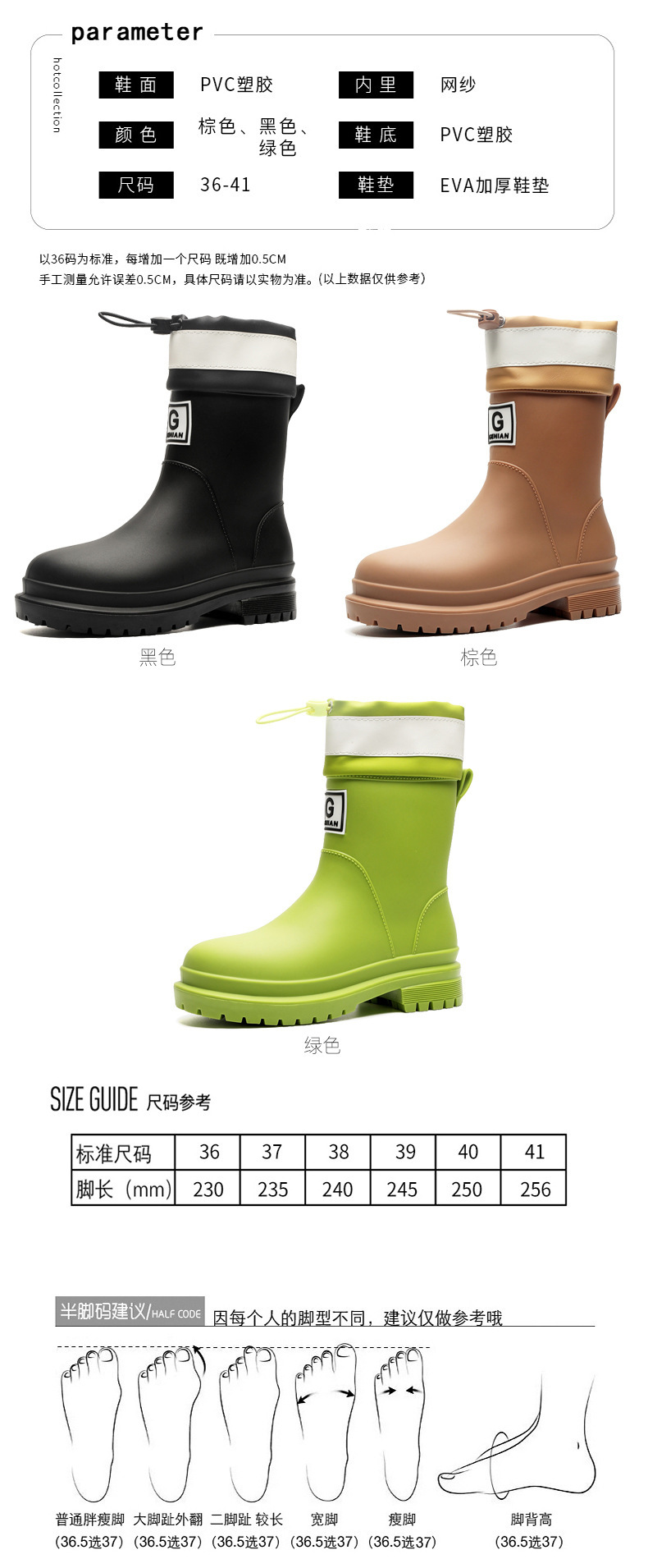 국경 간 한국 수출 패션 그물 빨간 튜브 여성 장화 비 슬립 장화 2024 새로운 오버 슈즈 방수 고무 신발