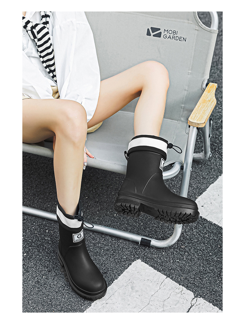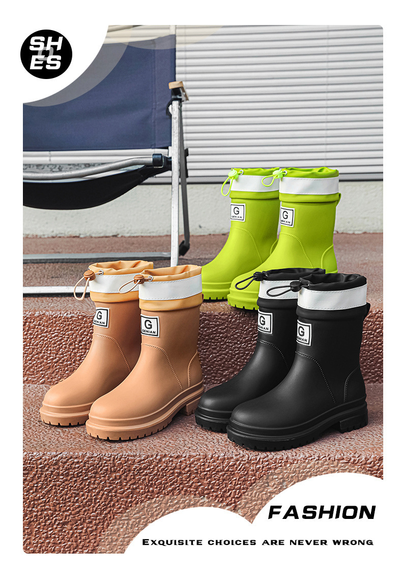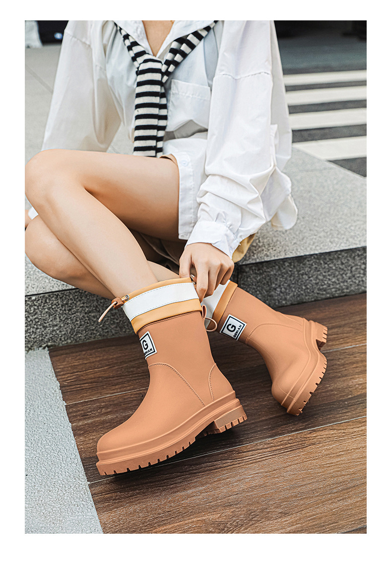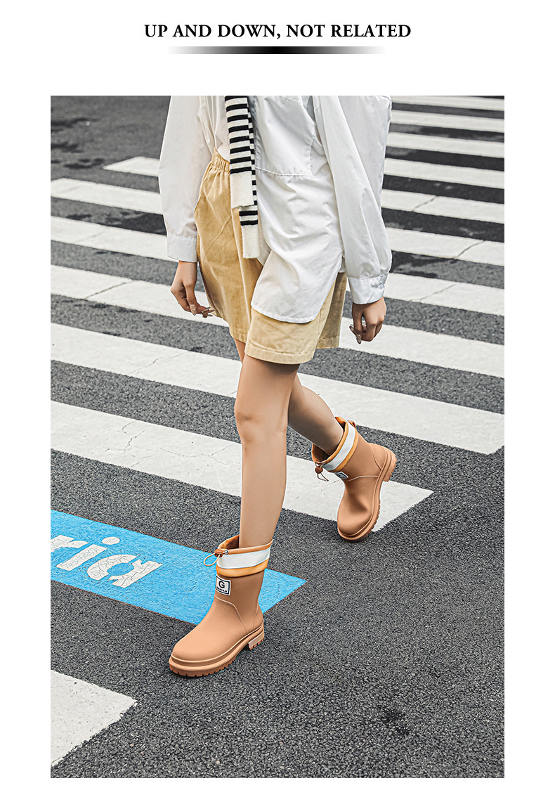 국경 간 한국 수출 패션 그물 빨간 튜브 여성 장화 비 슬립 장화 2024 새로운 오버 슈즈 방수 고무 신발
