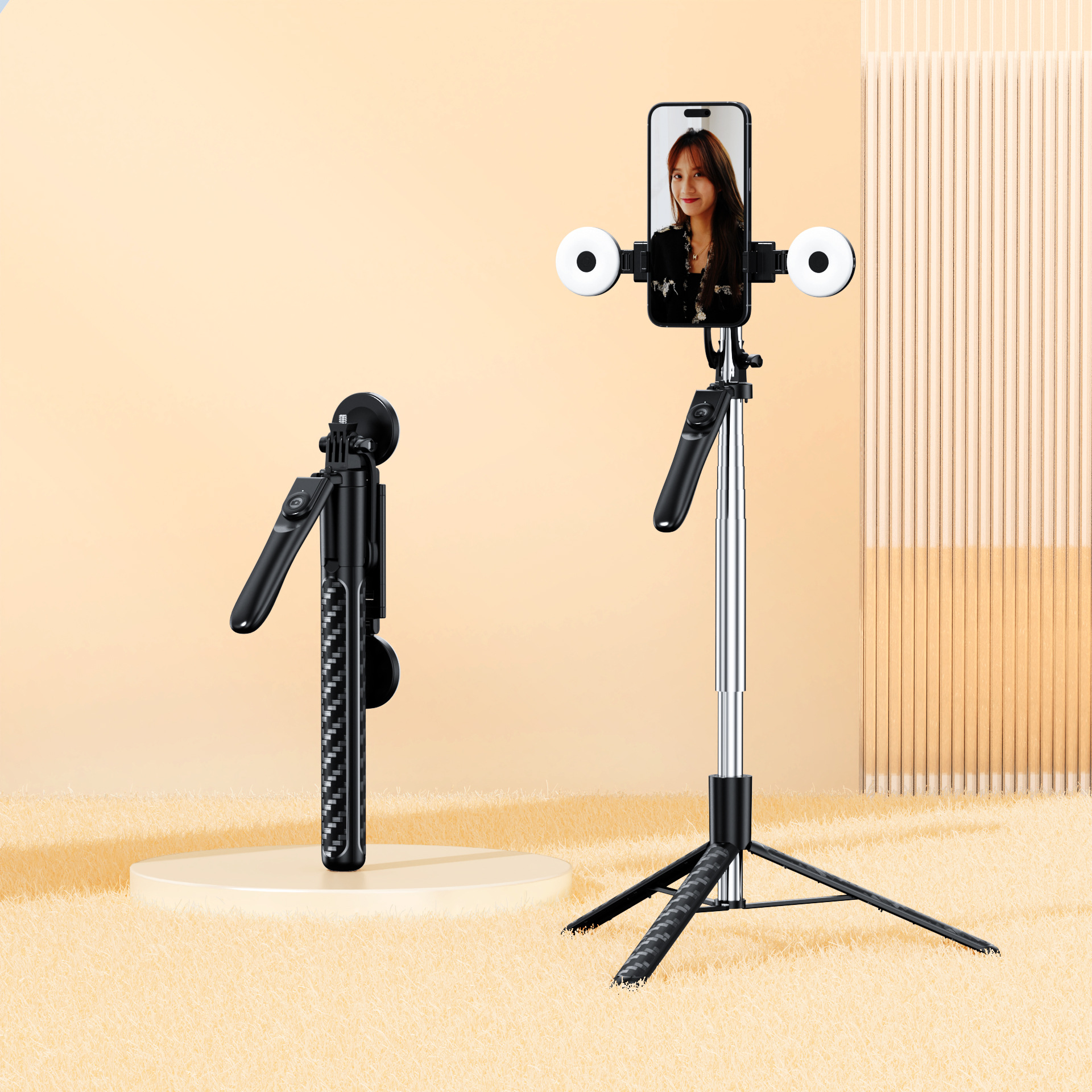 • [업그레이드 시 가격 인상 없음] X6max 블랙 더블 라이트 [ 1.88m 길어지고 두꺼워진 샤프트 + 대형 원형 조명 2개 + 사진 블루투스 + 안정적인 팔걸이 ]