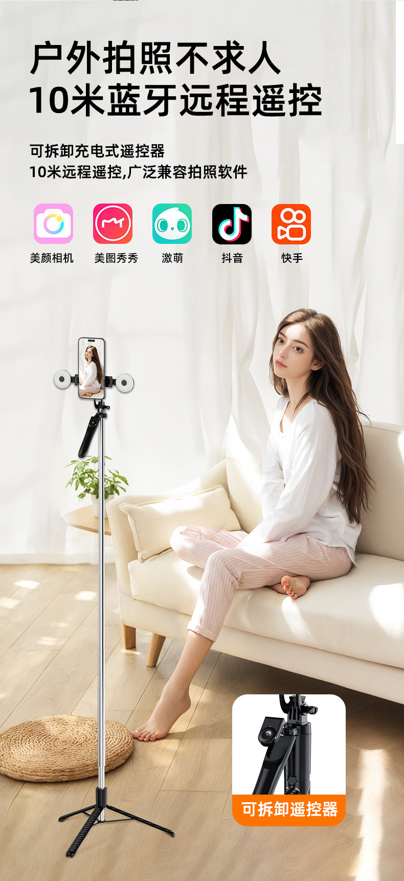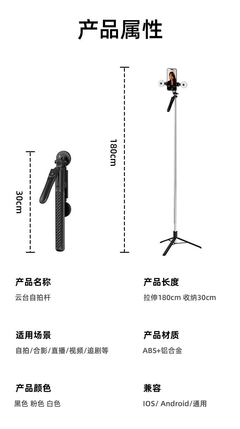• 단일 램프 Z18 pro 검정색 [1.8m 확장 샤프트 + 휴대용 안정 핸들 + 3색 중간 원형 조명 1개 + 카메라 Bluetooth]
