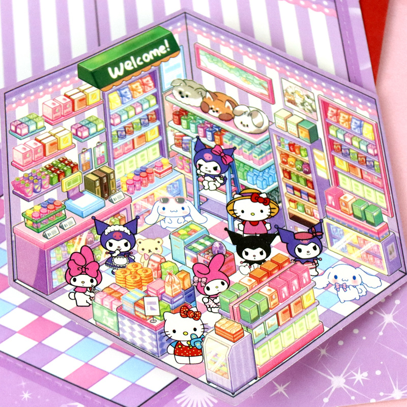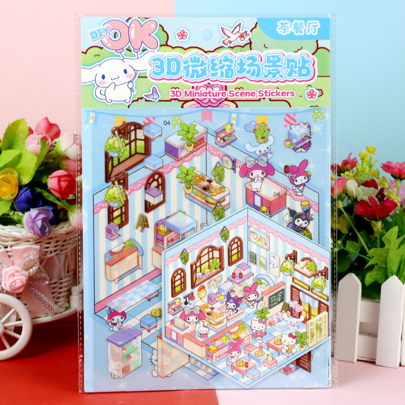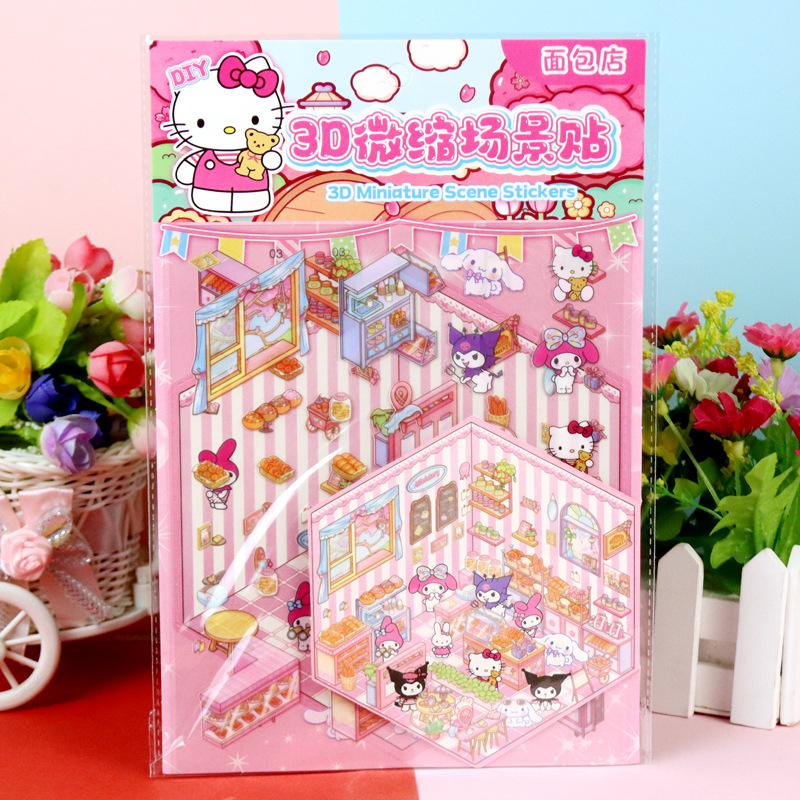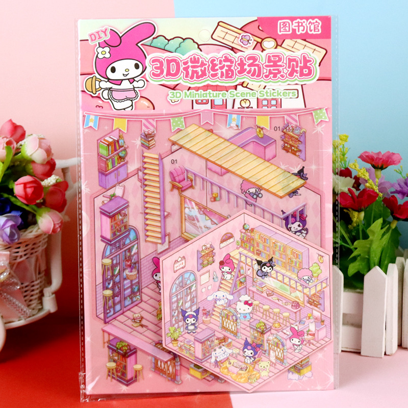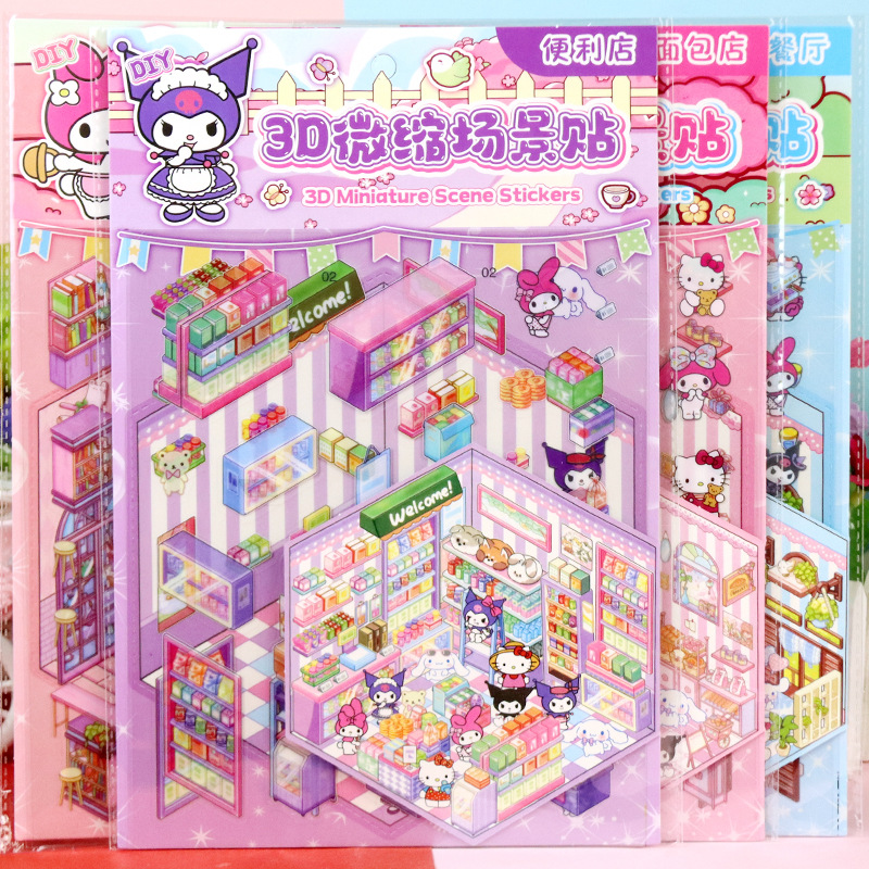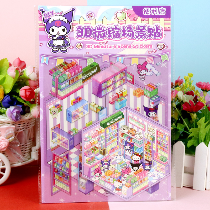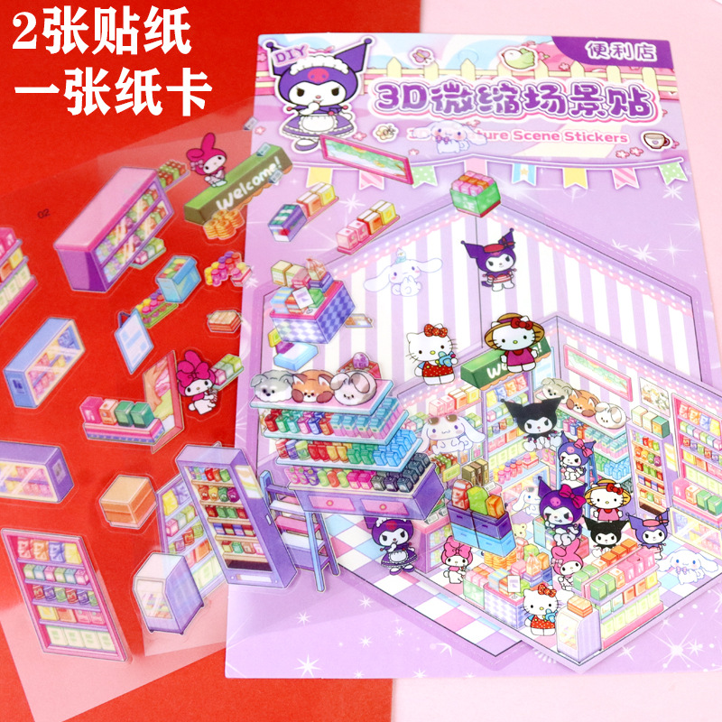 산리오 쿨로 미 만화 감압 풍경 스티커 창조적 인 마이크로 스케일 장면 콜라주 DIY 입체 핸드북 스티커스토어 가기