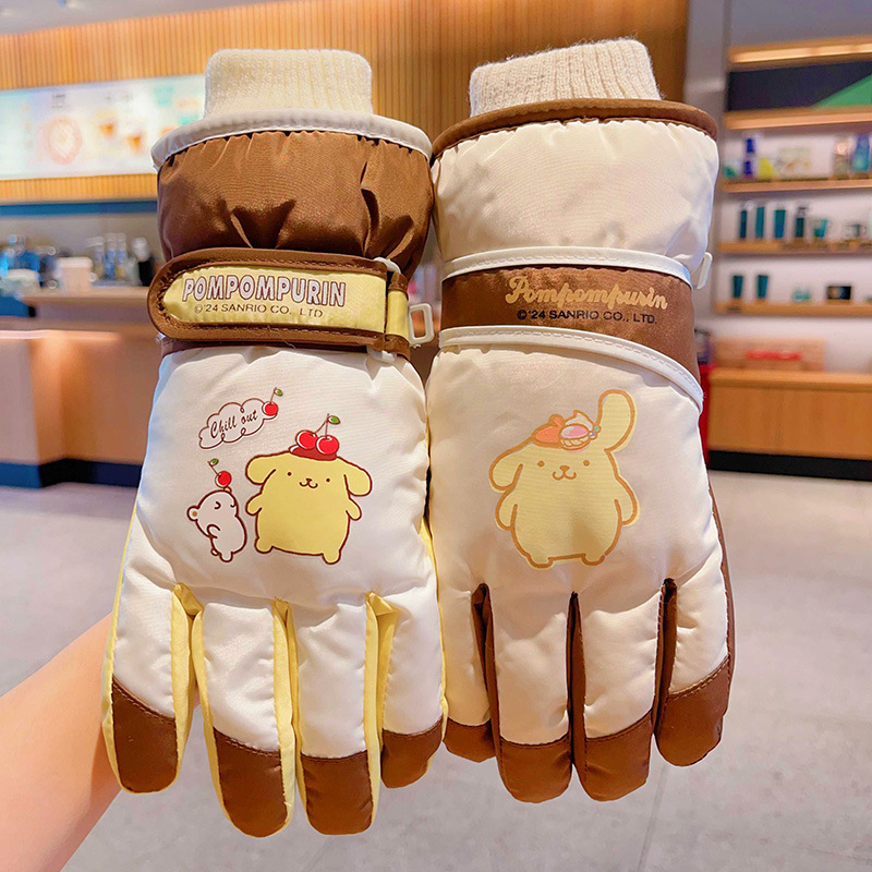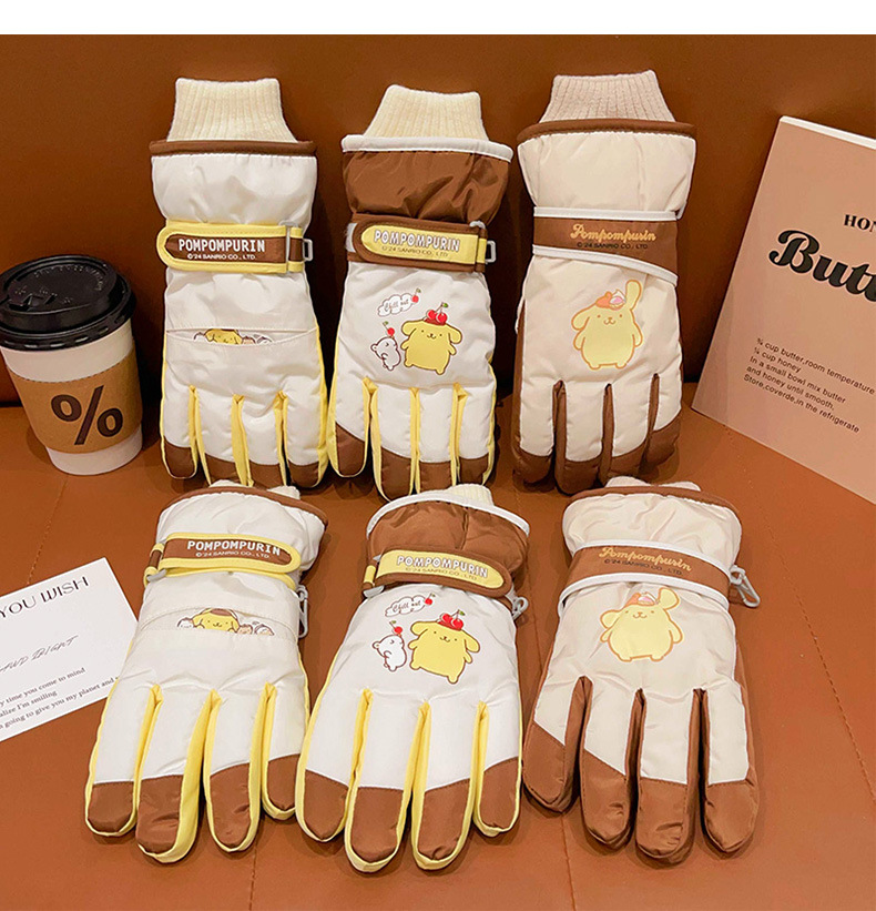 푸딩 개 어린이 스키 장갑 겨울 소년의 따뜻한 차가운 5 손가락 세트 어린 소녀의 눈 놀이 방수 면화 장갑