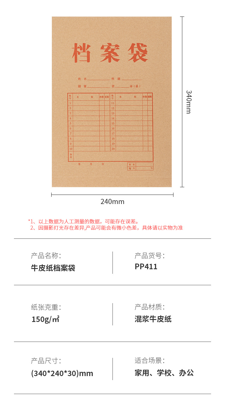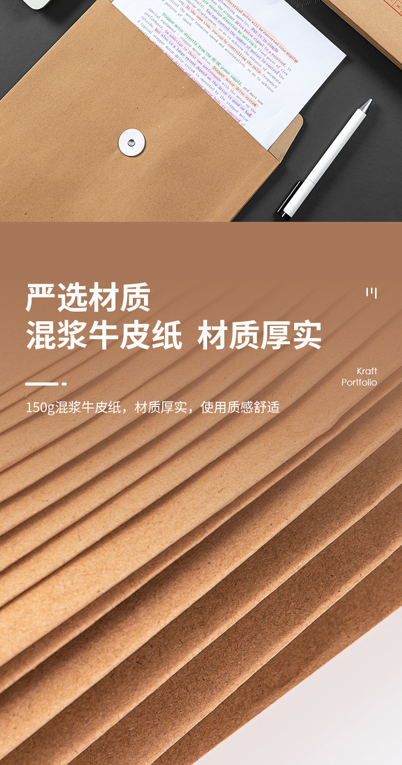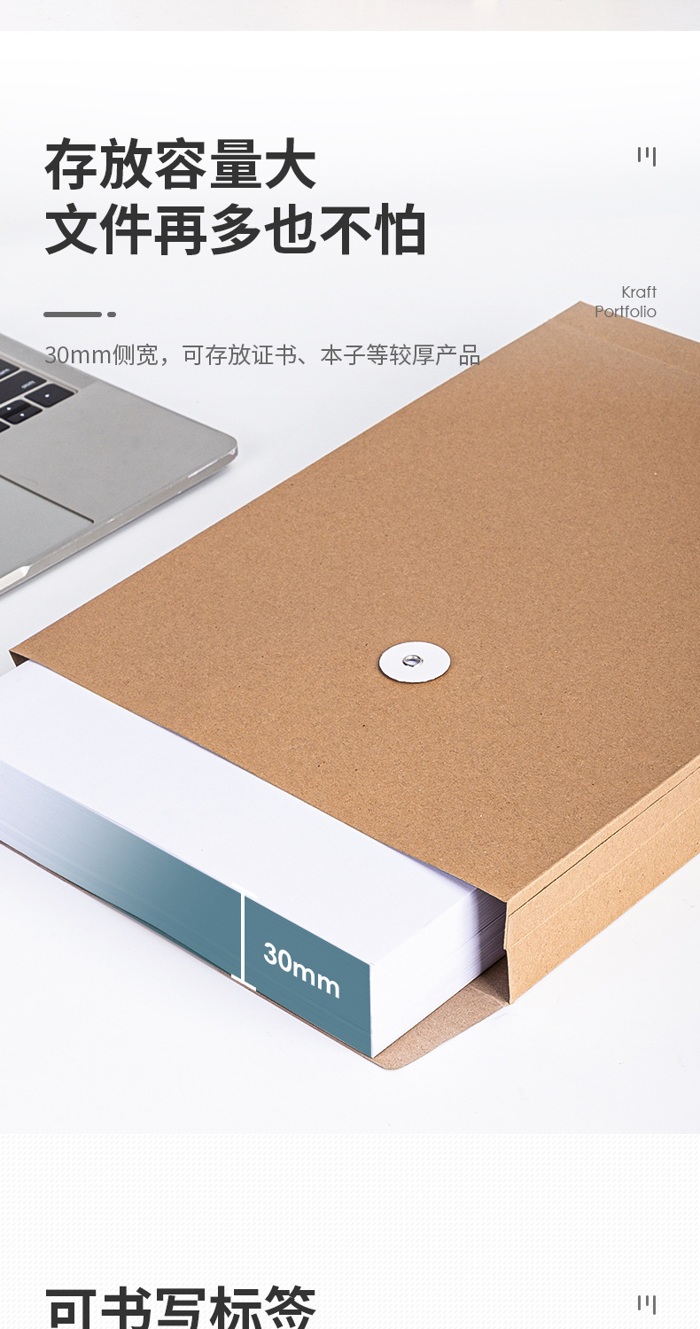 델리 A4 크래프트 종이 파일 가방 6cm 두꺼운 파일 가방 데이터 저장 가방 200g 사무실 소 가죽 파일 가방