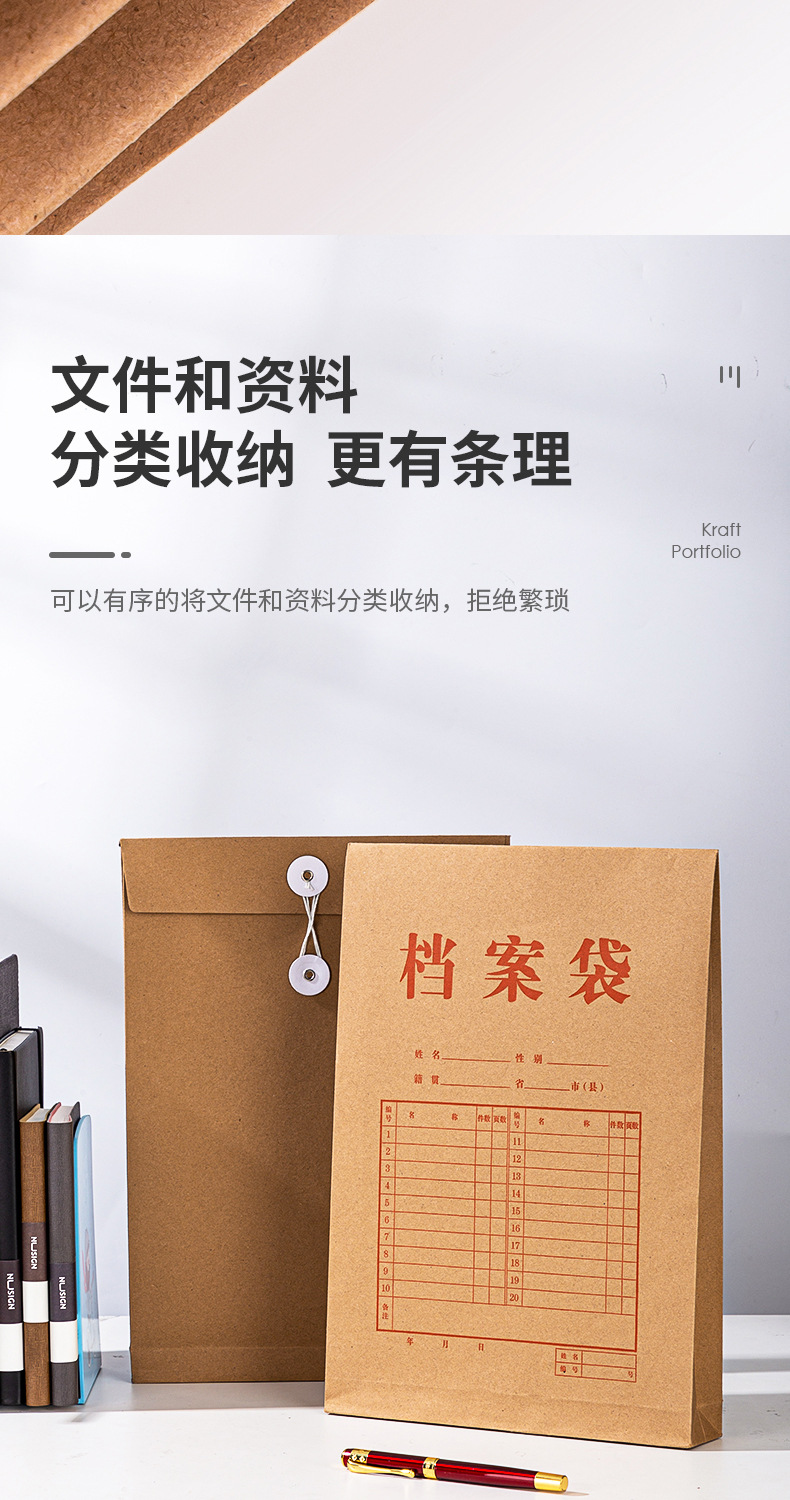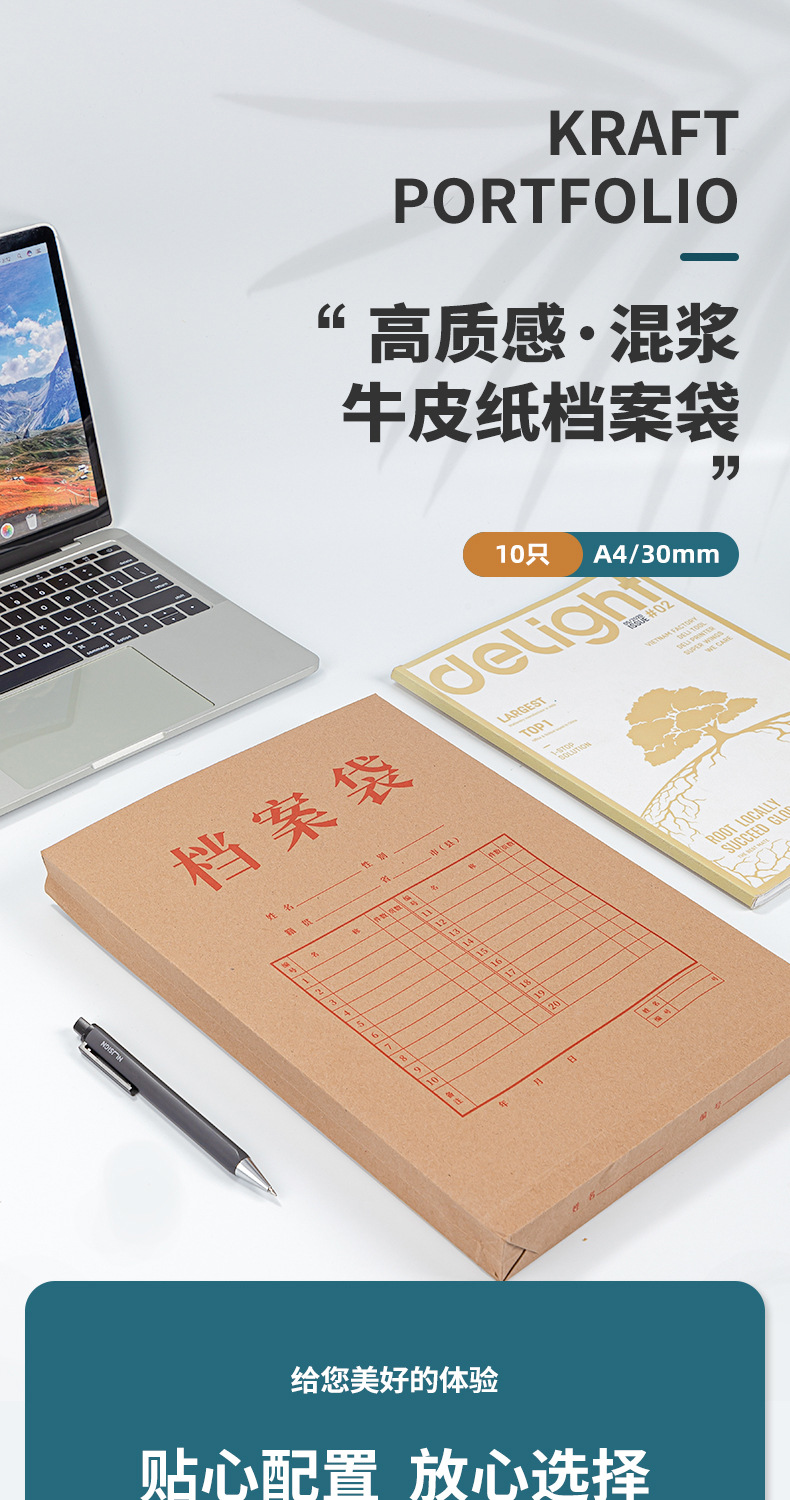 델리 A4 크래프트 종이 파일 가방 6cm 두꺼운 파일 가방 데이터 저장 가방 200g 사무실 소 가죽 파일 가방스토어 가기