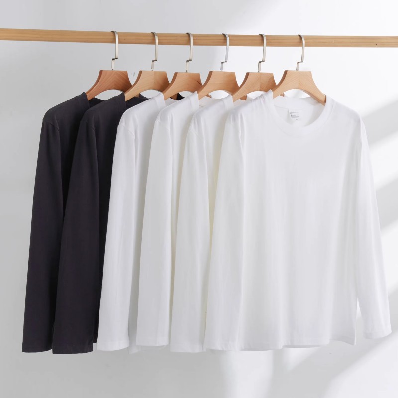 240 그램의 가을 신장 빗질면 둥근 목 단색 긴팔 남성 티셔츠 느슨한 바닥 셔츠 도매 머리카락 세대스토어 가기