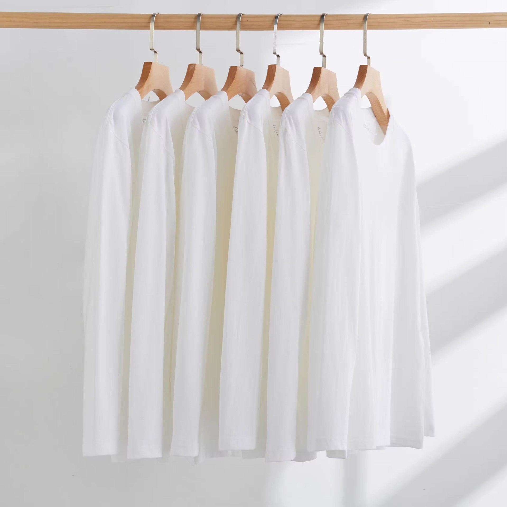 240 그램의 가을 신장 빗질면 둥근 목 단색 긴팔 남성 티셔츠 느슨한 바닥 셔츠 도매 머리카락 세대