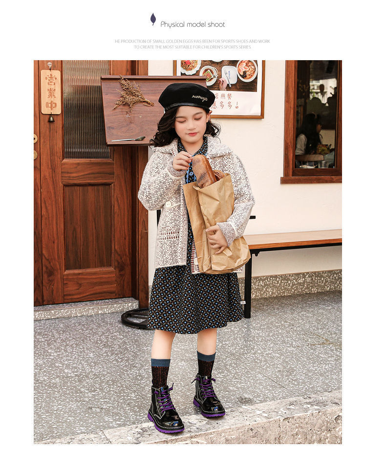 어린이 마틴 부츠 2024 새로운 소녀 부츠 가을 및 겨울 올 매치 발목 부츠 기모 영국 스타일 가죽 부츠 코튼 부츠