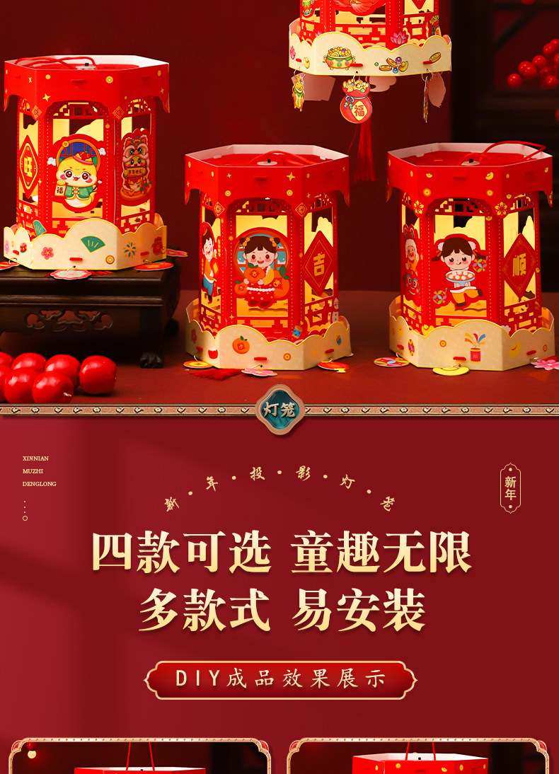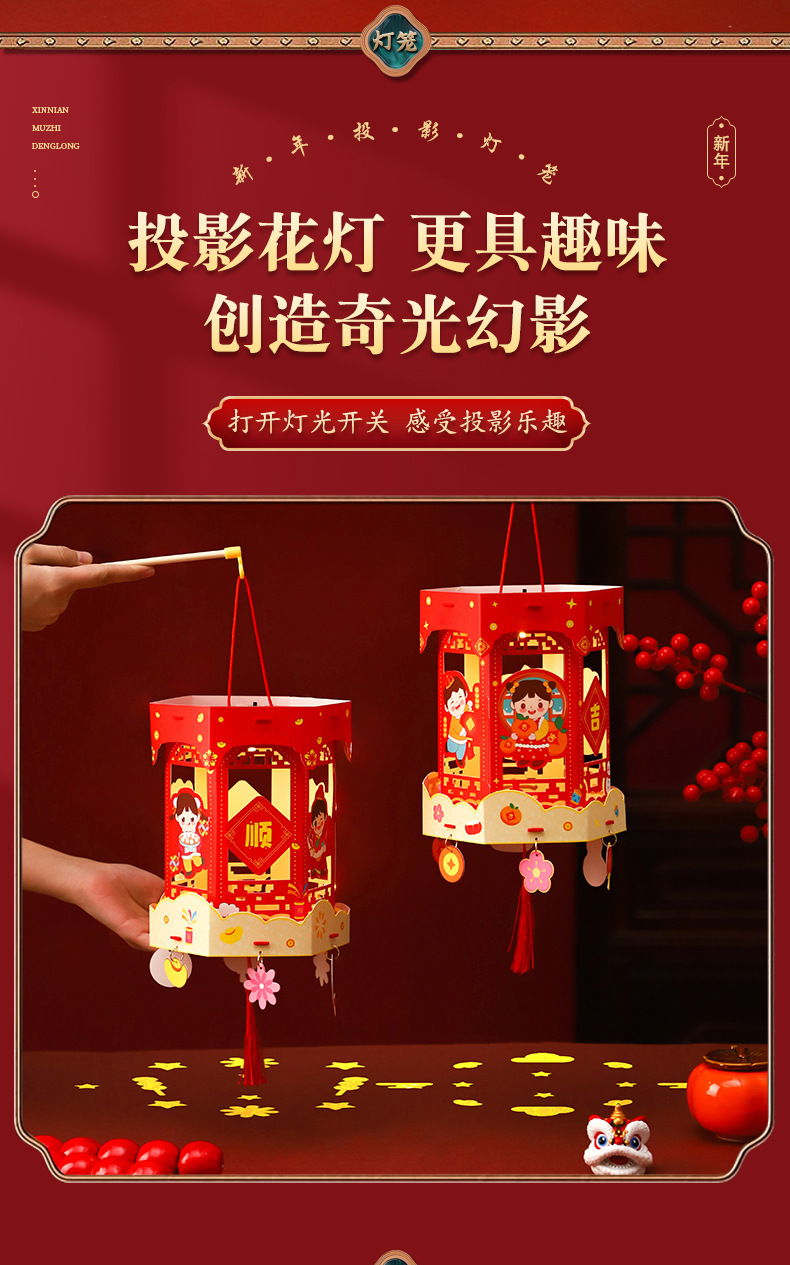 봄 축제 전국 조수 프로젝션 등불 어린이 새해 수제 재료 가방 유치원 뱀 장식의 휴대용 빛나는 등불 년