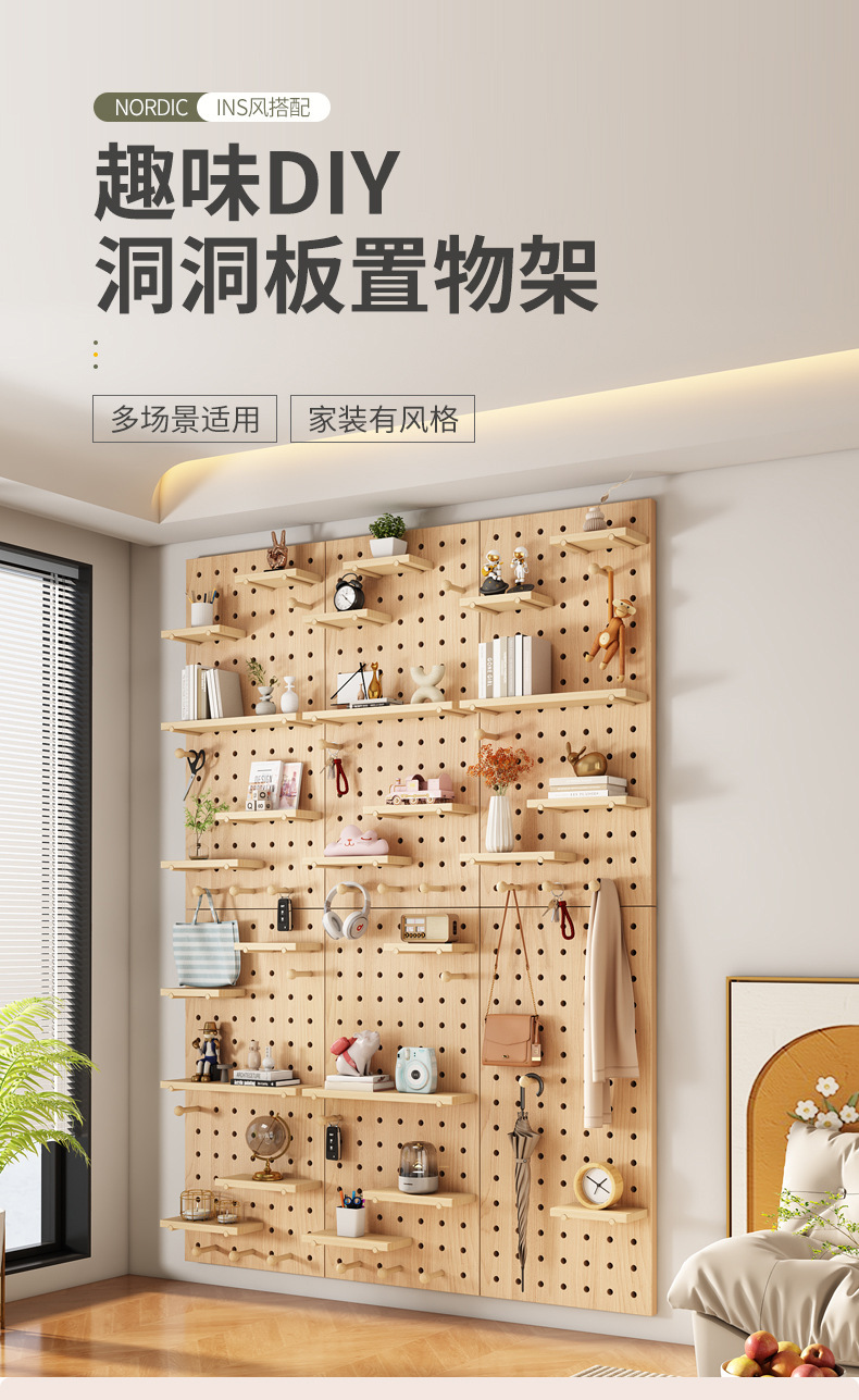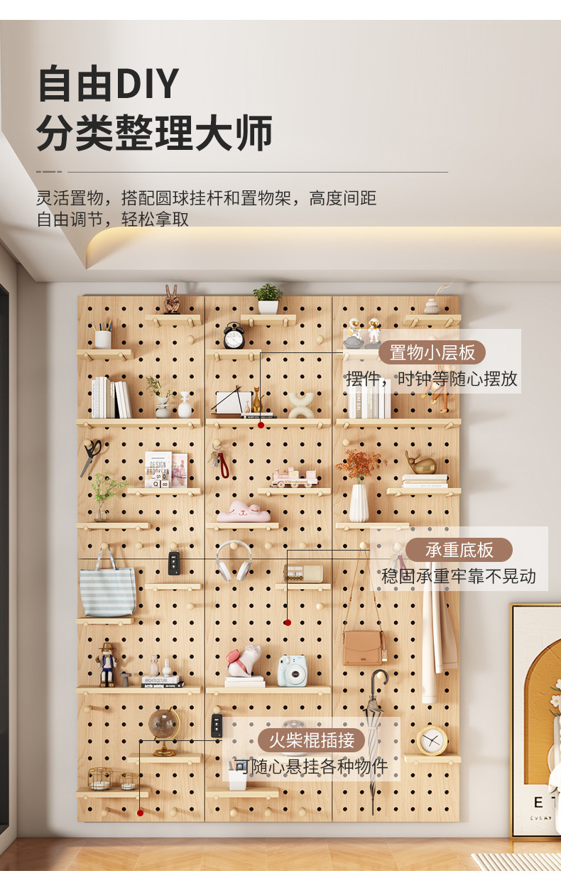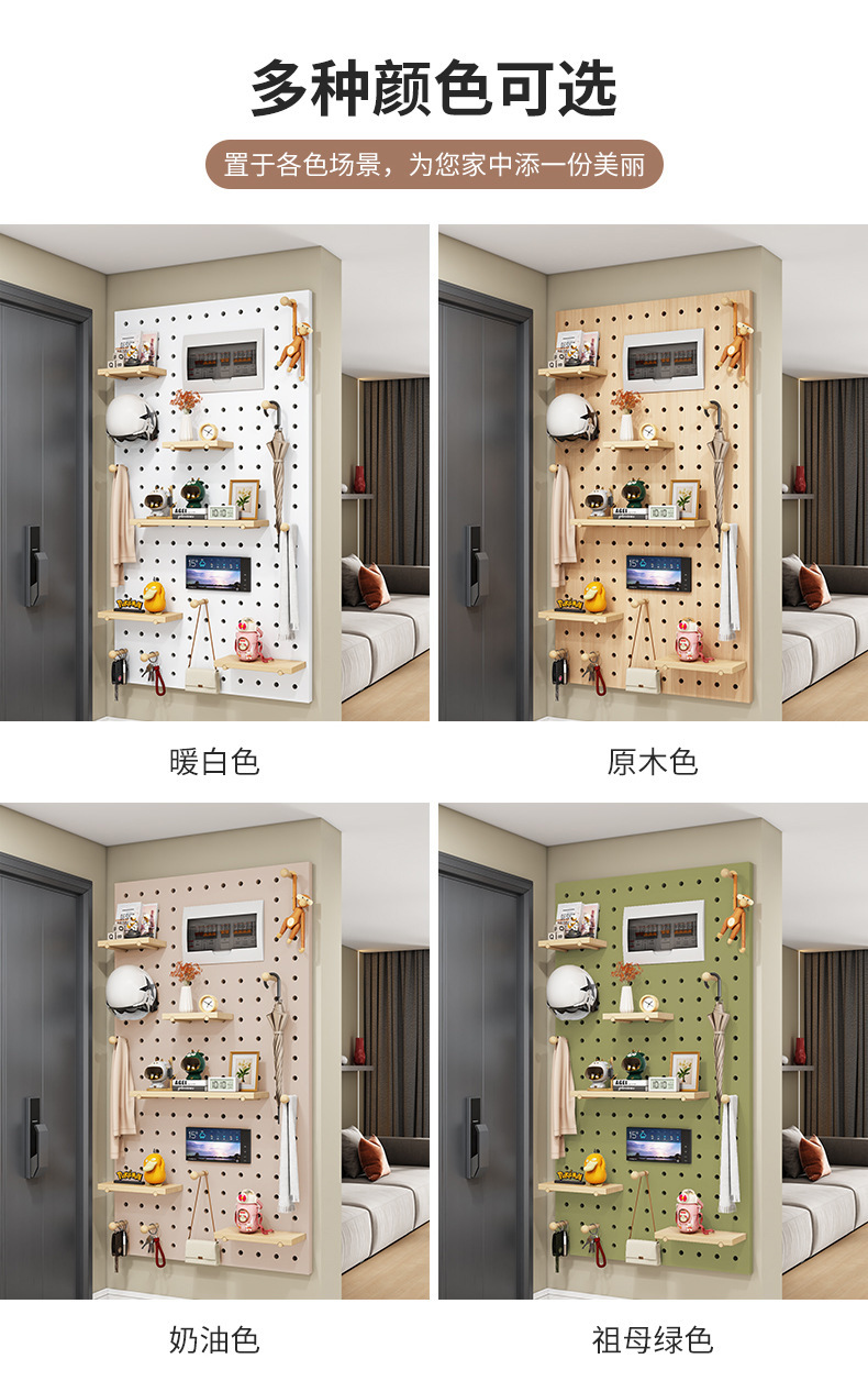 홀 보드 스토리지 랙 솔리드 우드 파티션 교수형 보드 나무 입구 벽 구멍 벽 책장 벽 디스플레이 랙
