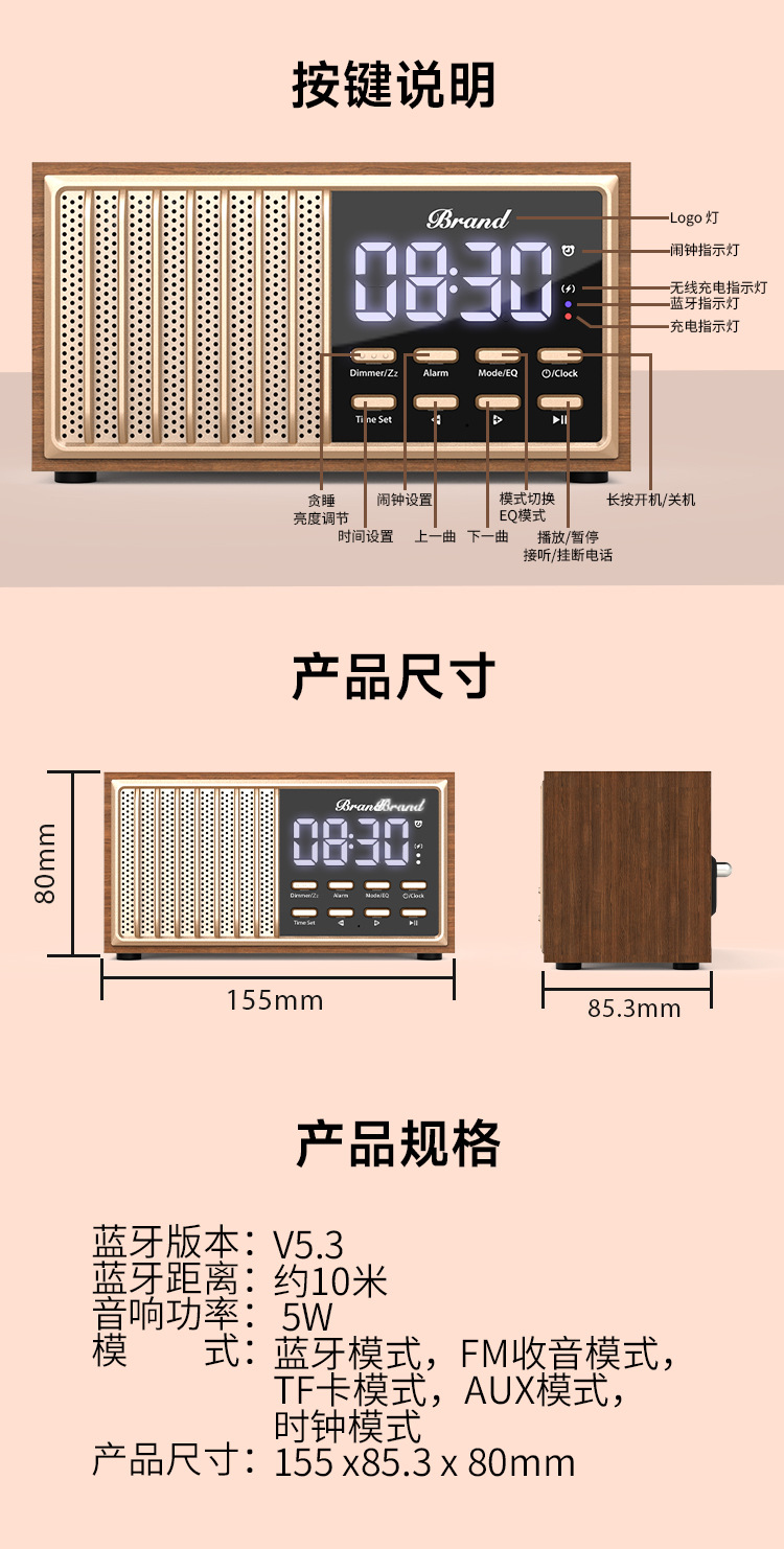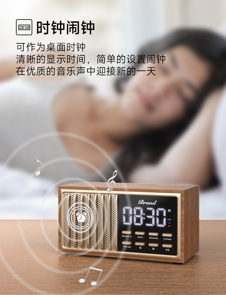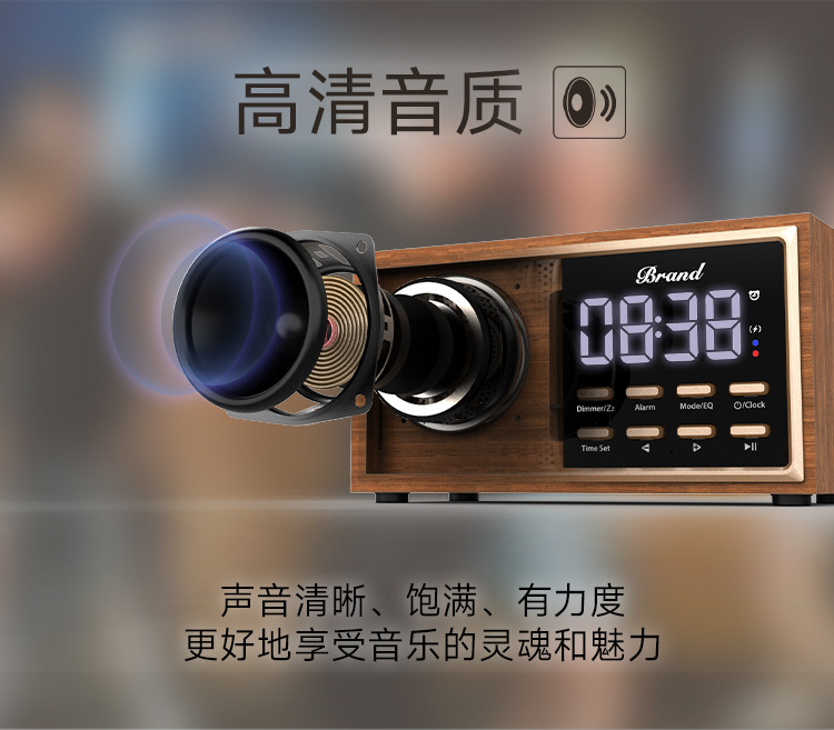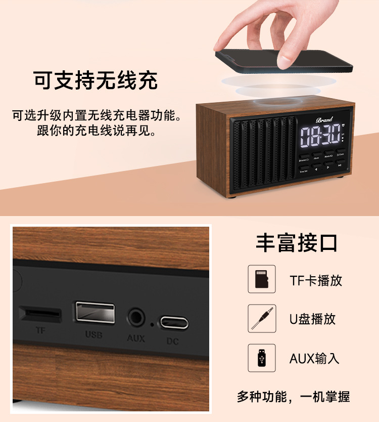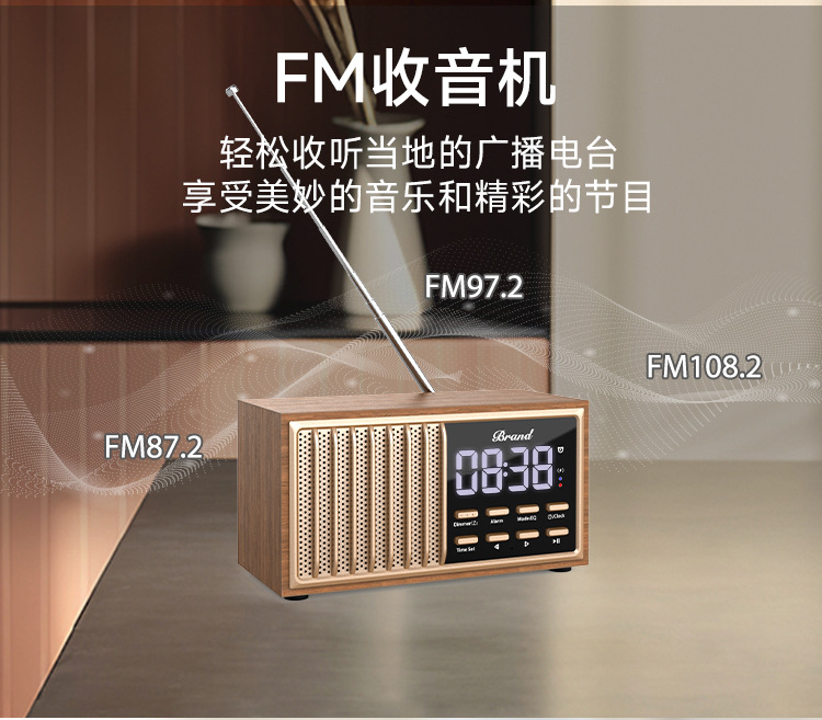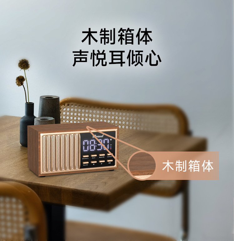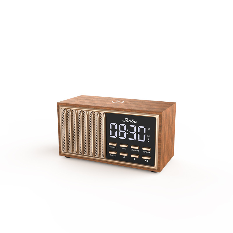 원목 레트로 블루투스 스피커 중저음 가정용 데스크탑 FM 라디오 무선 충전 오디오 블루투스 5.1스토어 가기