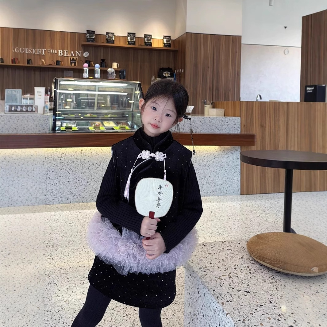 중국 스타일 겨울 여성의 새로운 중국 스타일 국가 스타일 면 패딩 두꺼운 밝은 다이아몬드 벨벳 투투 스윙 스커트 원피스스토어 가기