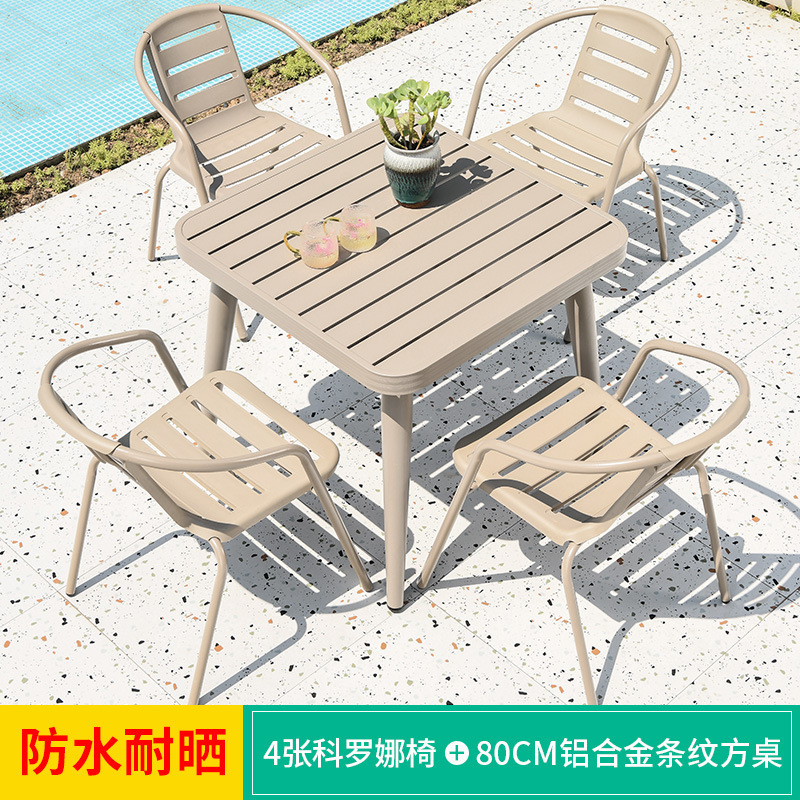 • 코로나 의자 4개 + 80CM 알루미늄 스트라이프 사각 테이블