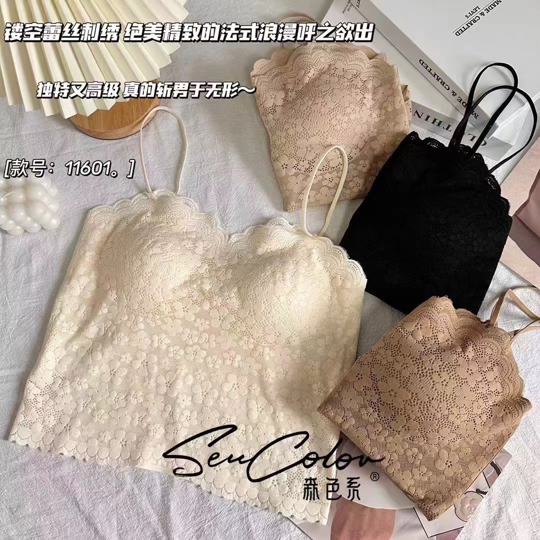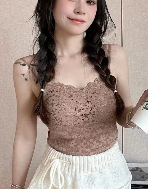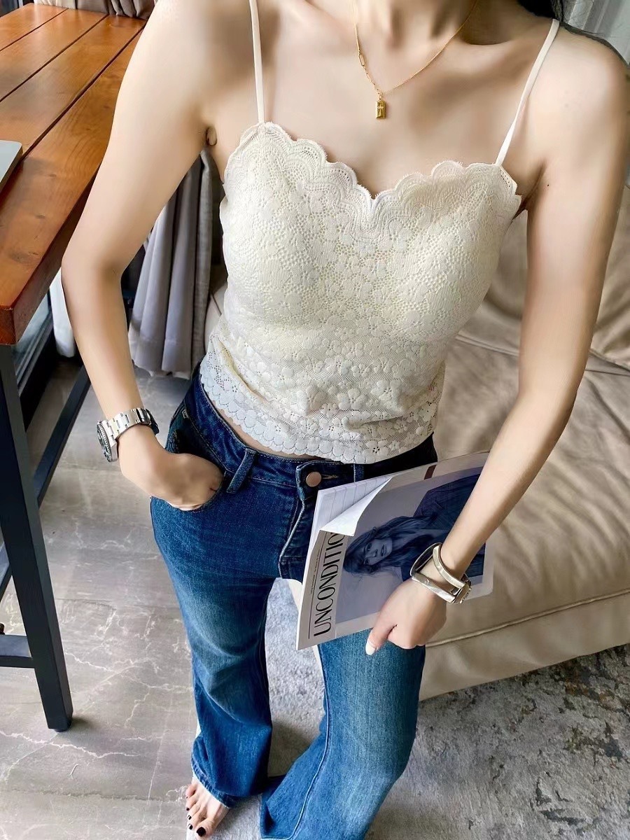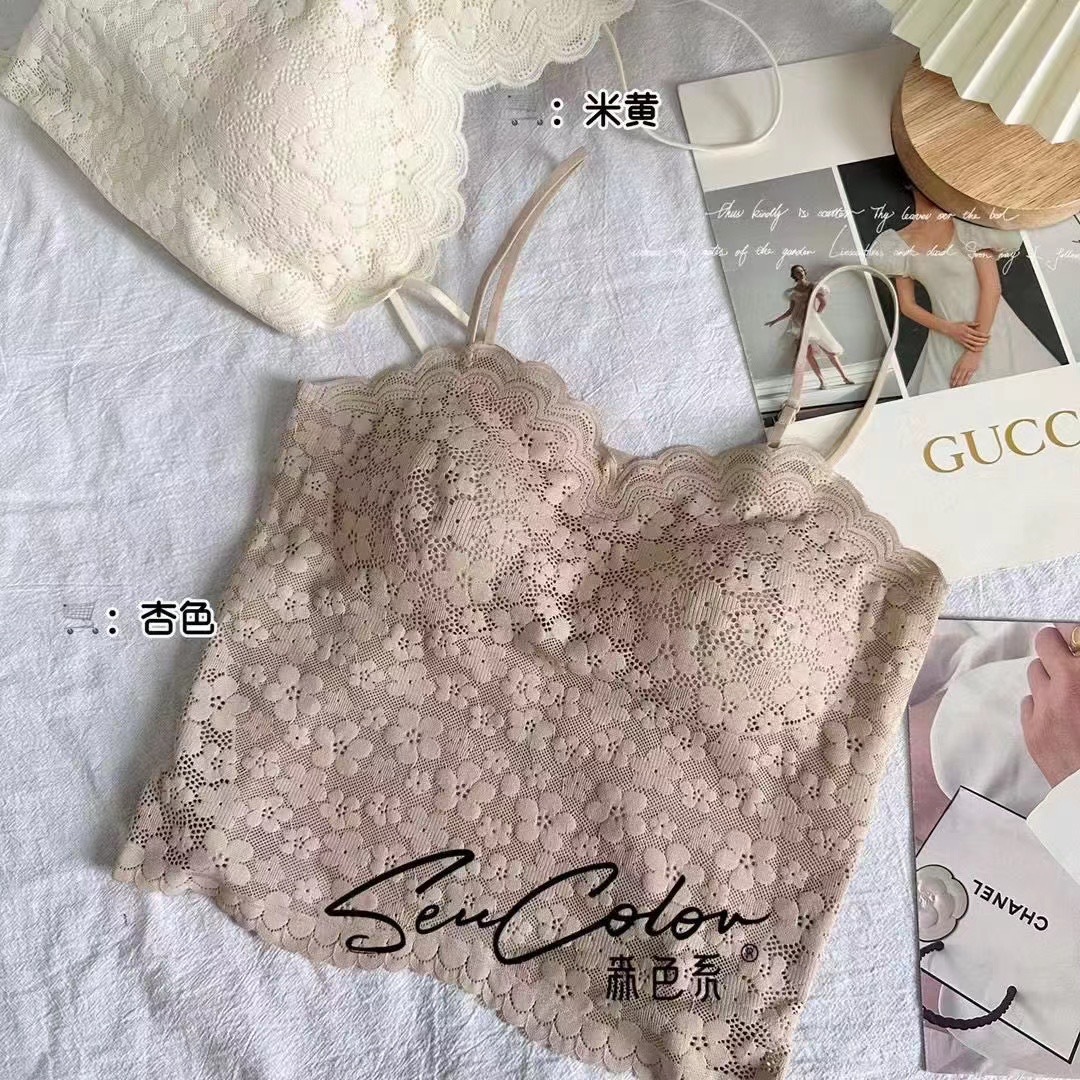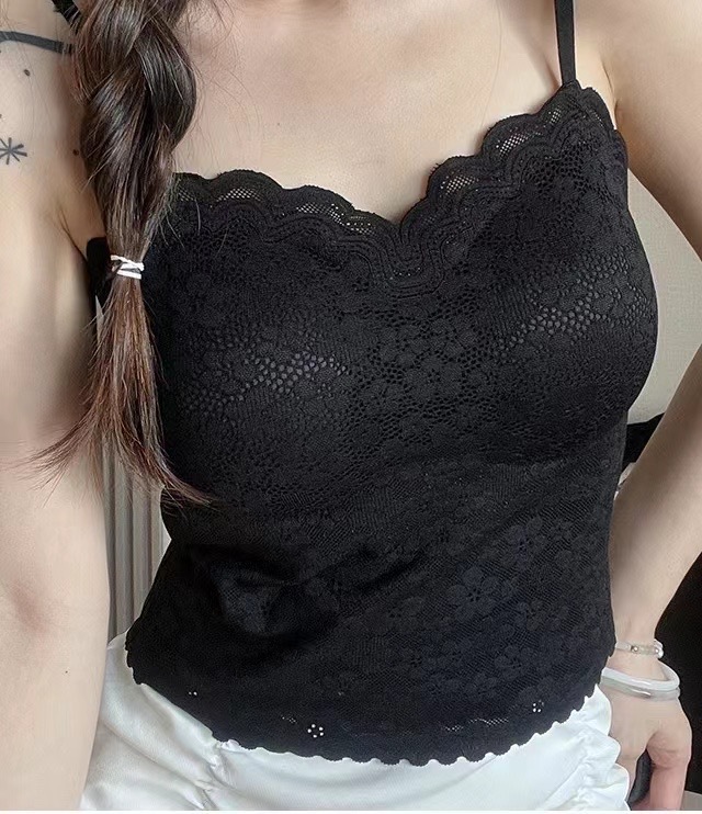 새로운 레이스 뷰티 백 고정 컵 안티 러닝 쇼트 카미 솔 여자 원피스 섹시 올 매치베이스 탑
