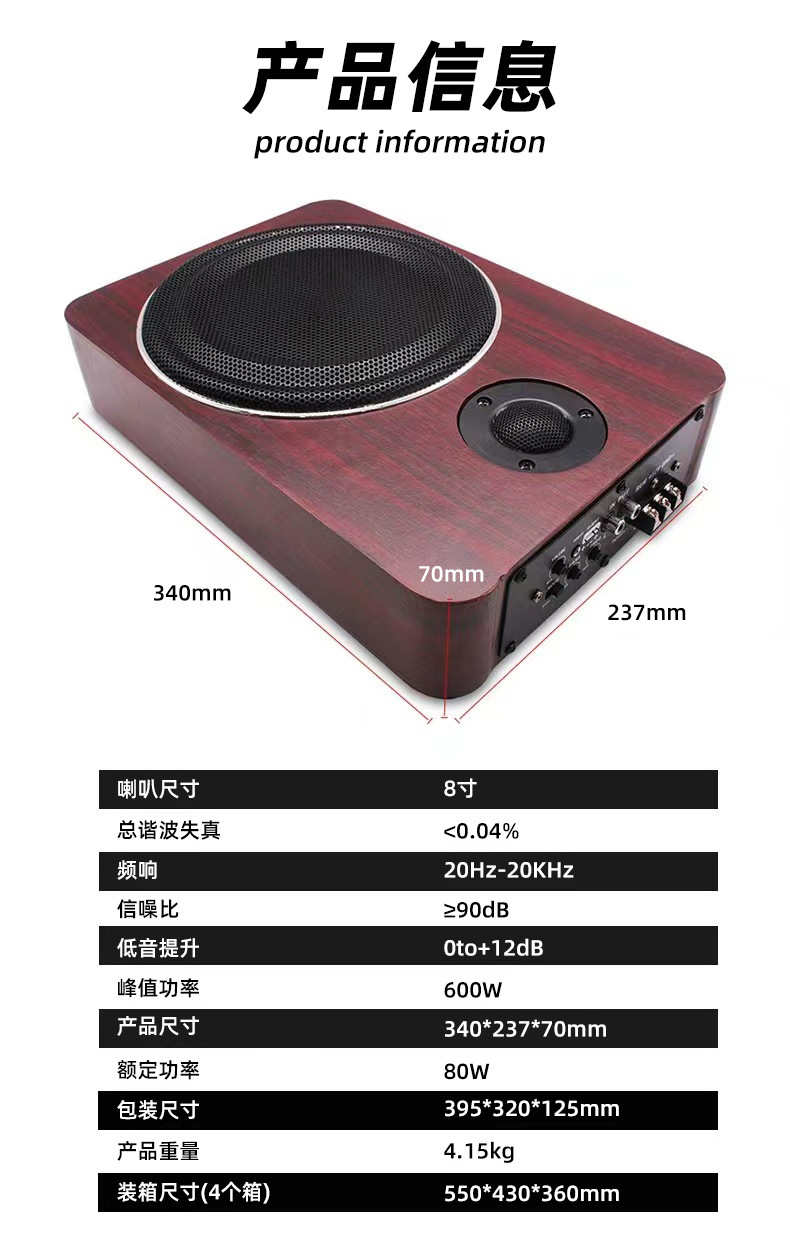 국경 8 인치 12V 초박형 자동차 서브 우퍼에는 자동차 시트 아래 나무 초박형 서브 우퍼에 적합한 고음이 함께 제공됩니다.스토어 가기