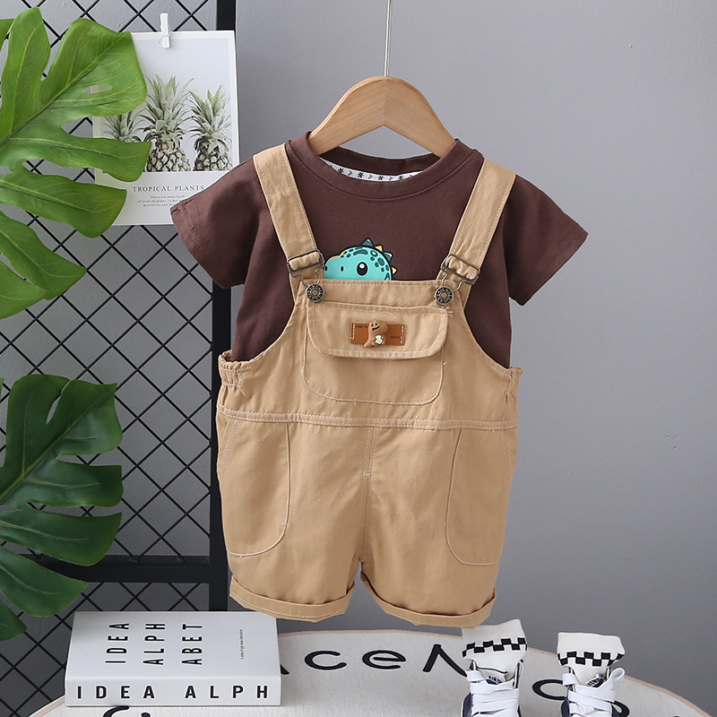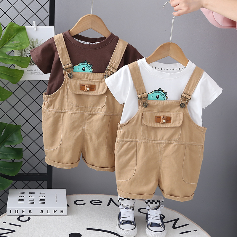여자 여름 세트 2025 새로운 외국 스타일 아기 여름 어린이 3 차원 공룡 표준 스트랩 2 피스 세트 조수스토어 가기