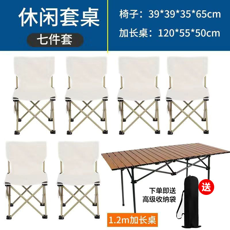 • 카키색 - (두꺼운 스탠드) - 120cm 싱글 테이블 + 의자 * 6 (무료 보관 가방)